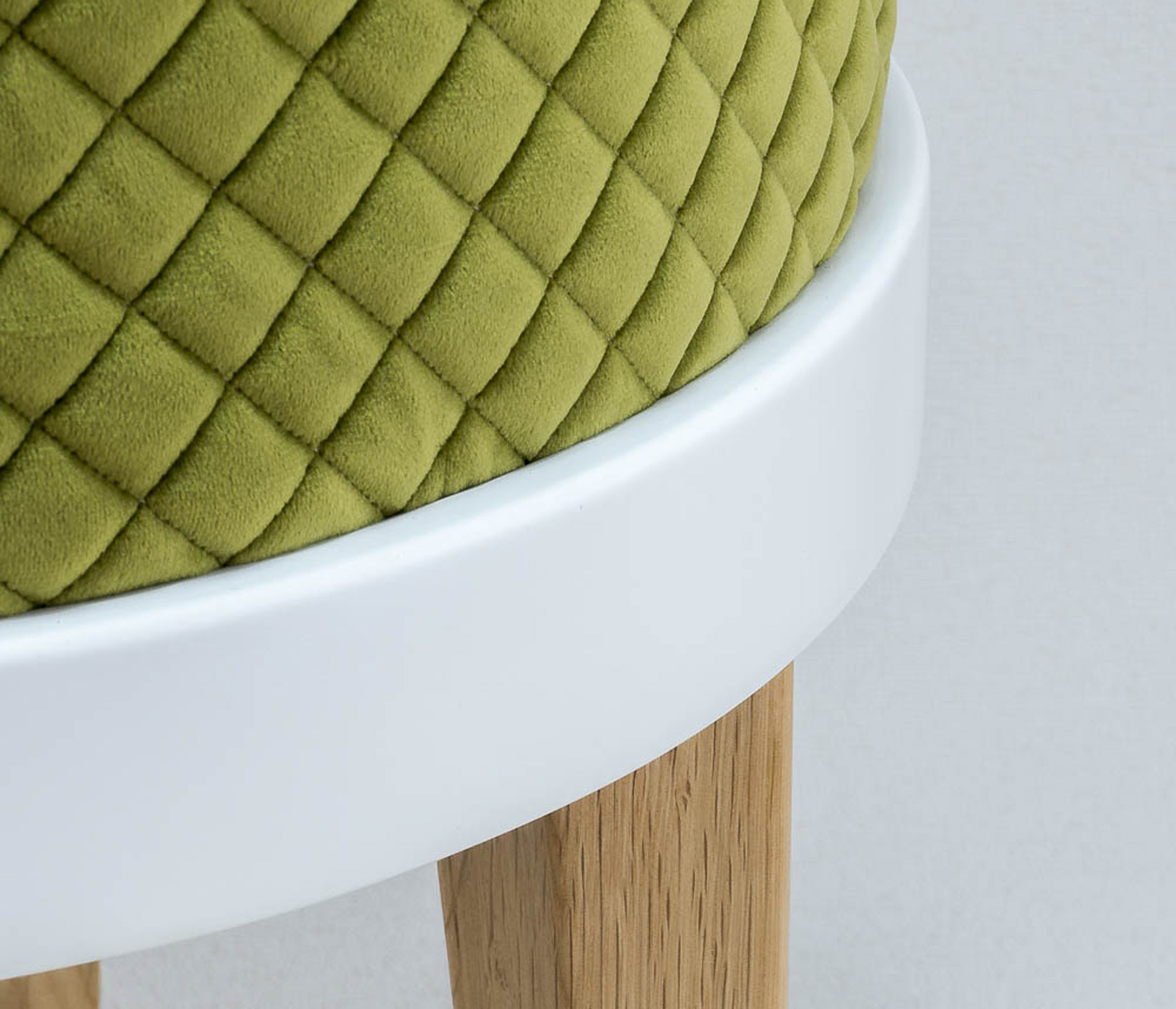 В производстве пуфов и банкеток мы используем массив дуба, натуральный дубовый шпон, мебельную фанеру, крепежные элементы из нержавеющей стали. На деревянные части нанесено экологичное покрытие: твердый масло-воск, белая матовая эмаль (производство Италия). Ткани: мебельный велюр, диагональ, бязь, синтетический наполнитель, поролон, хлопковая ткань (производство Россия).