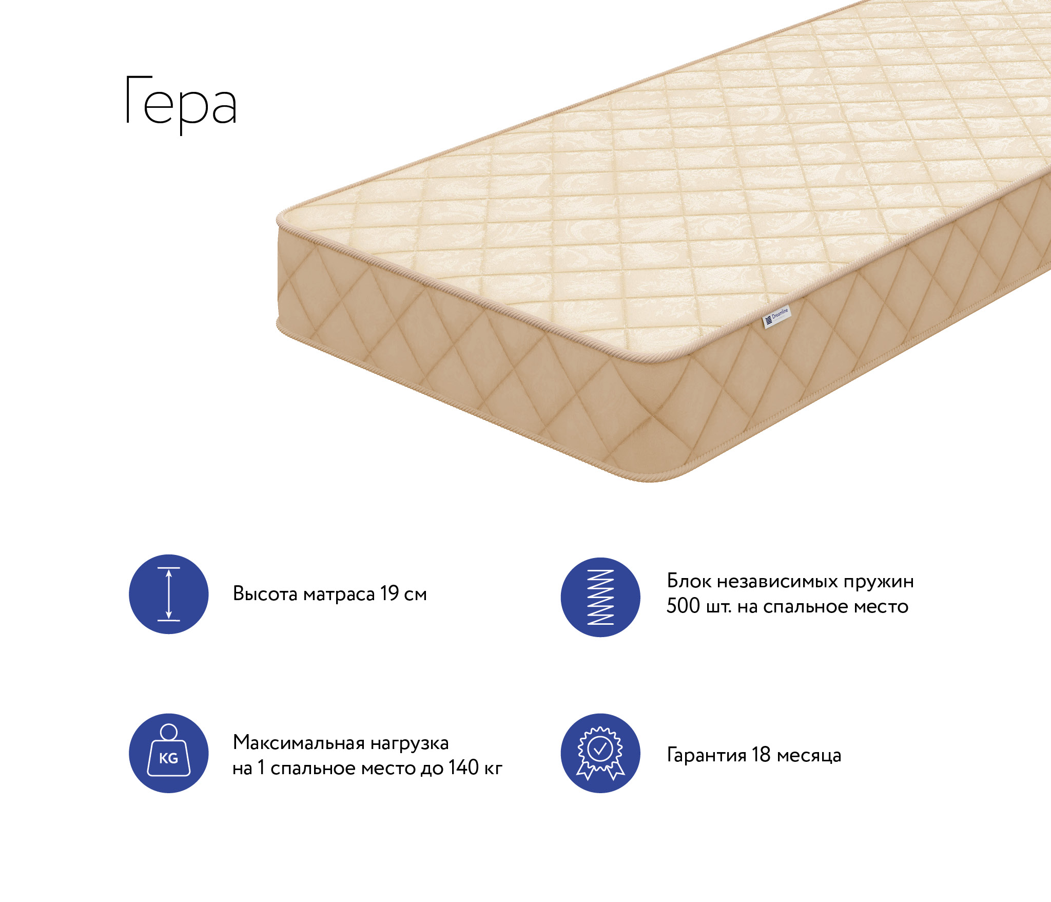 Матрас DreamLine Гера рассчитан на значительные нагрузки до 110 кг. на одно спальное место.