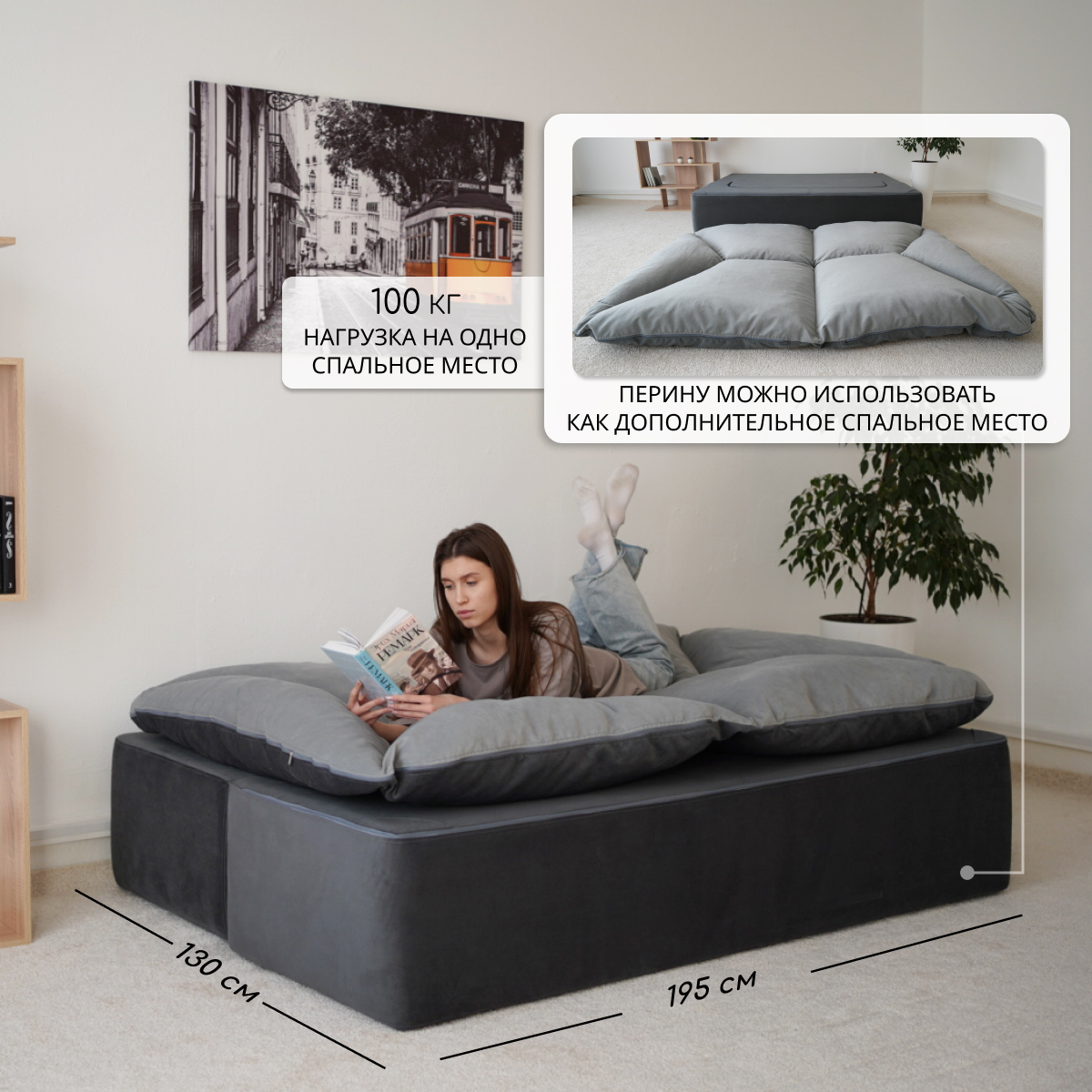Бескаркасный диван-кровать Дадли 1950*1050мм., велюр (Серый) Код I0000390401