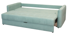 Радиусные углы «сглаживают» изделие. Спальное место легко трансформируется в большую удобную кровать – механизм трансформации «Тик-Так» удобный и лёгкий в эксплуатации. Сиденье создано по технологии «Split Foam». Наполнитель изготовлен из рассечённой анатомической пены, соединённой в несколько слоёв. Сиденье средней жёсткости. Ортопедическое основание «Birch battens» - средней гибкости, на основе берёзовых лат. Идеально подходит для анатомических моделей.