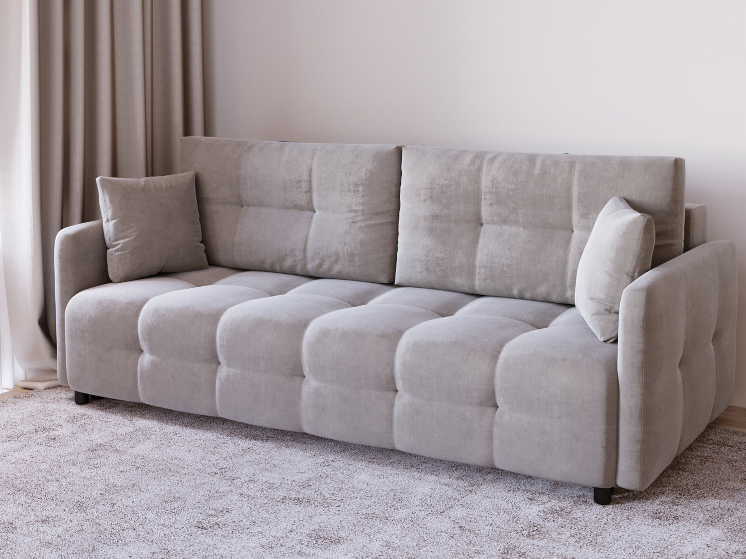 Диван-кровать Квадро, велюр (Светло-серый)