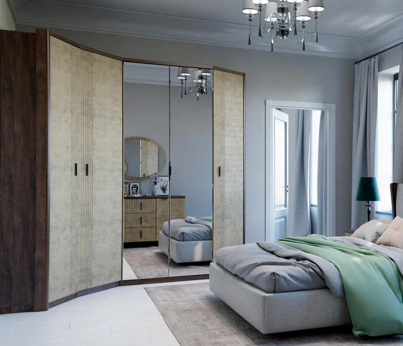 Угловой распашной скошеный шкаф Шер ШК-2322 имеет 1 дверь (одну глухую), внутреннее наполнение: полки ЛДСП, установлен на пластмассовых опорах, фурнитура европейских производителей, ручки металлические