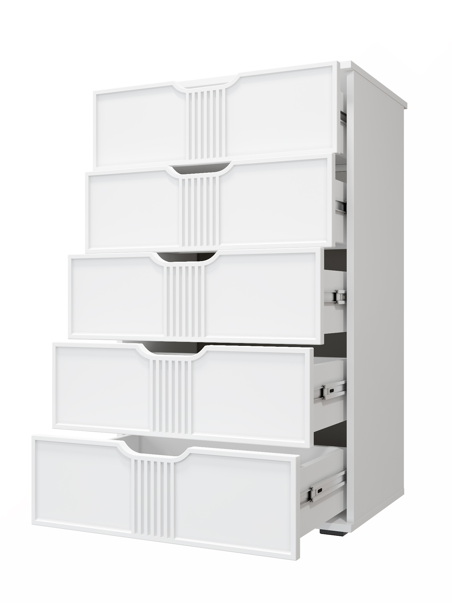 Комод Эмилия ЭЛ-18 изготовлен из ЛДСП 16 мм, фасады МДФ. Свес крышки в 30 мм обеспечит прилегание к стене с любым плинтусом. Фурнитура: телескопические направляющие полного выдвижения без доводчиков. Важная информация. Мебель доставляется в разобранном виде, в упаковках.