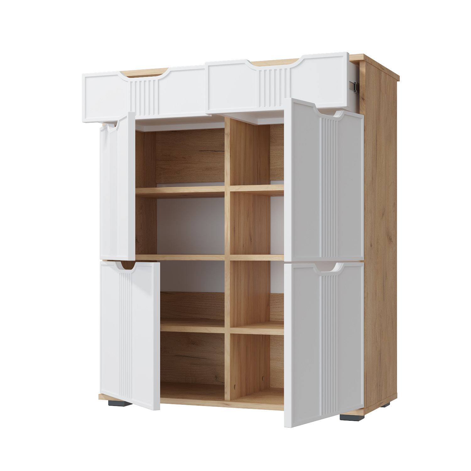 Комод Эмилия ЭЛ-20 изготовлен из ЛДСП 16 мм, фасады МДФ. Свес крышки в 30 мм обеспечит прилегание к стене с любым плинтусом. Фурнитура: телескопические направляющие полного выдвижения без доводчиков. Важная информация. Мебель доставляется в разобранном виде, в упаковках.