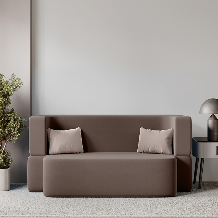 Вес всего 25 кг. Это позволит Вам без усилий поднимать и передвигать малогабаритный трансформер при уборке. Легкость даст возможность перемещать диван-кровать в разные помещения. Благодаря отсутствию твердых элементов в конструкции софа с подлокотниками безопасна для ребенка и идеально впишется в детскую или комнату подростка.
