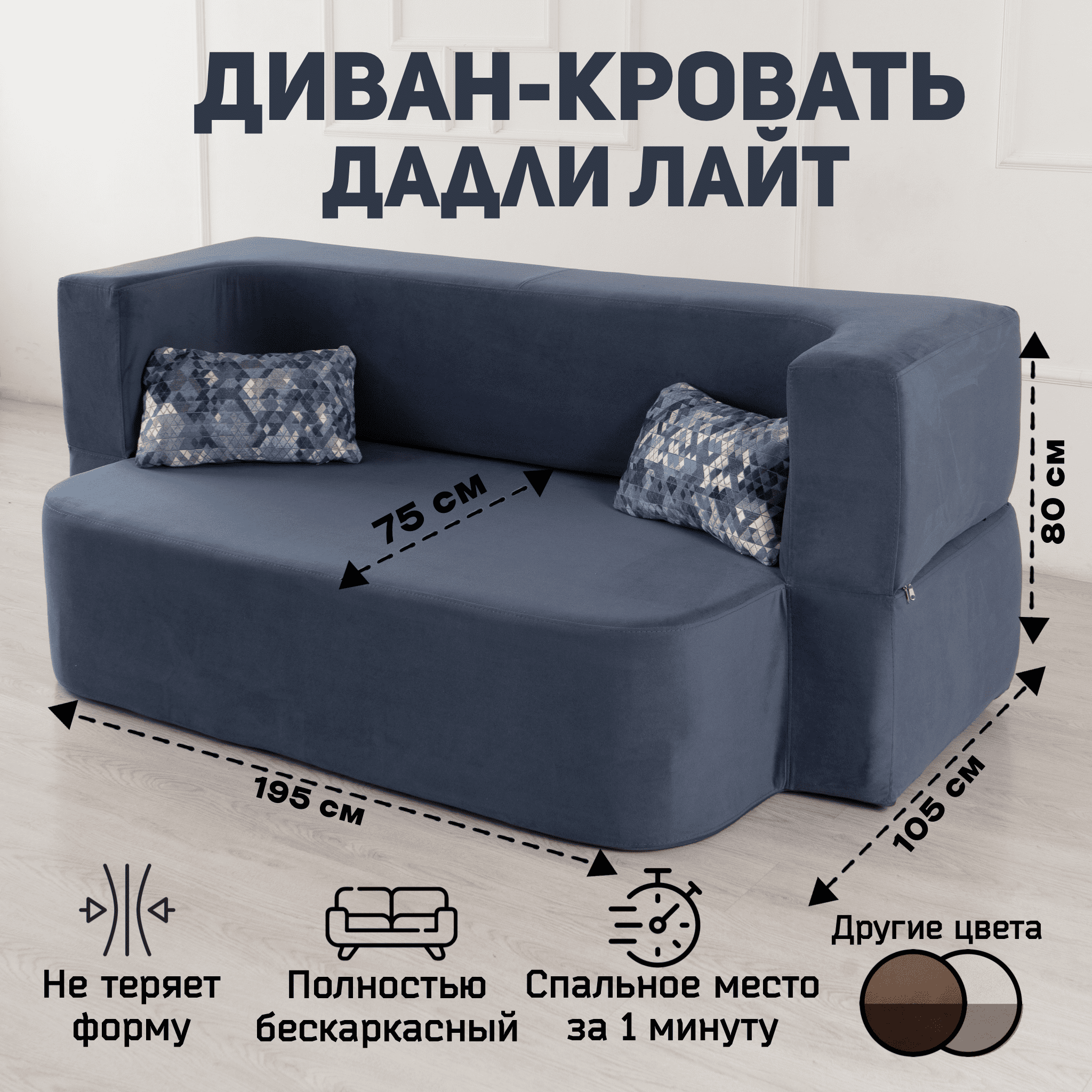 Отзывы о Столплит Бескаркасный диван-кровать "Дадли ЛАЙТ" 1950*1050мм. велюр Синий