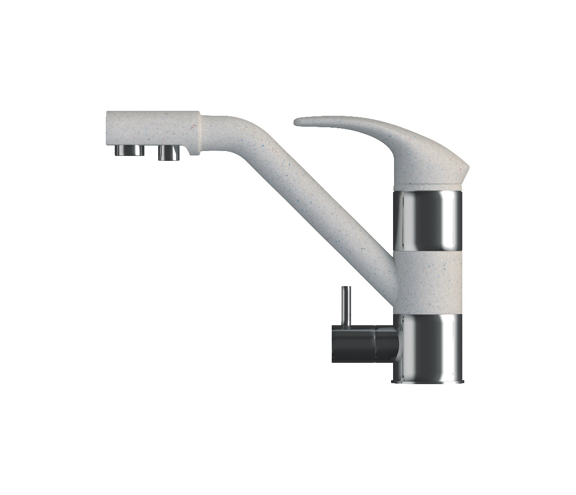 Современный, надёжный смеситель идеально подходит ко всем мойкам мраморной серии GranFest. 3650 - практичная модель с высоким U-образным изливом, изготовлен из долговечной латуни высокого качества. Напор и температура воды регулируется при помощи однорычажного механизма с бесшумным керамическим картриджем 35 мм.