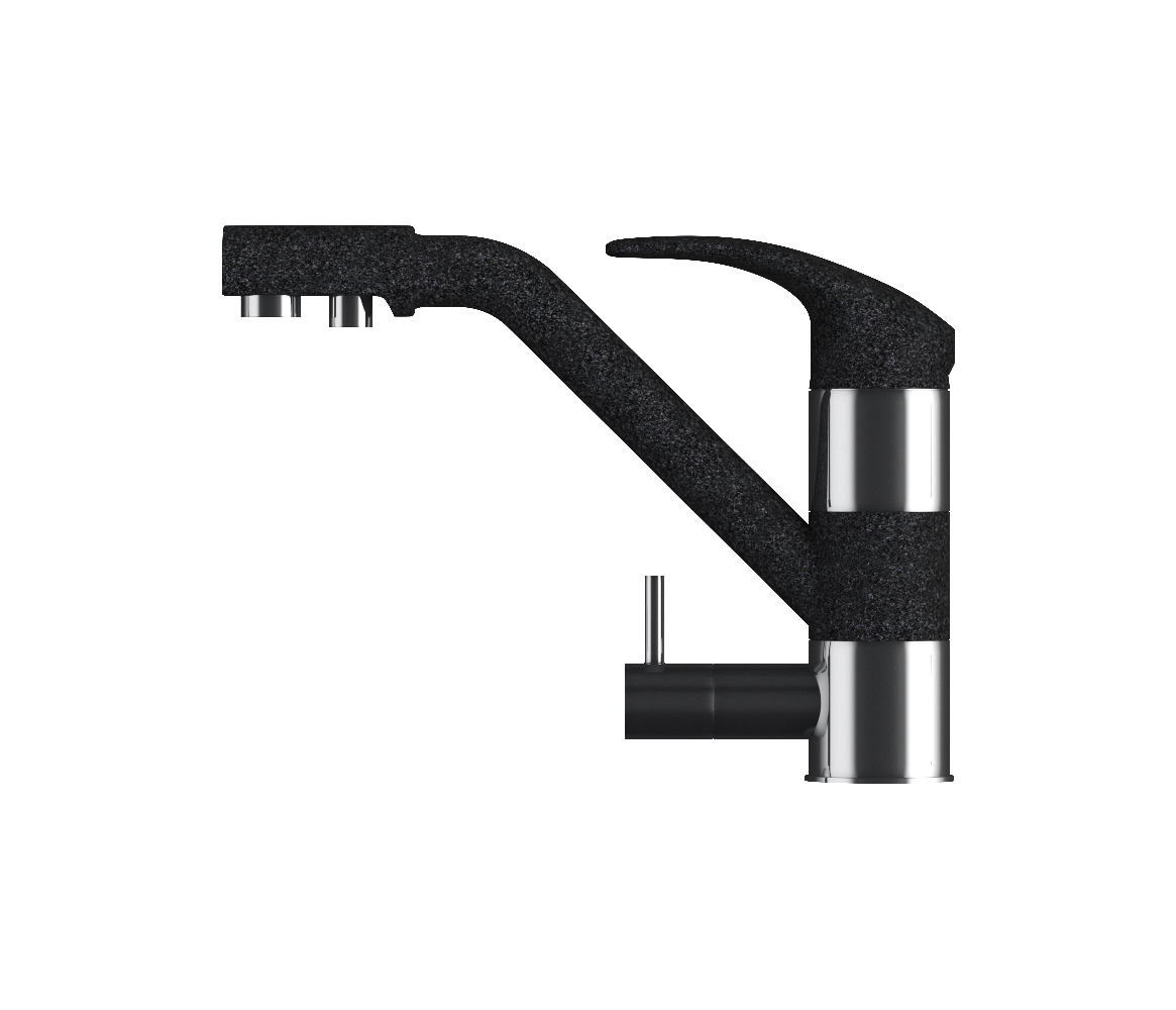 Готового отверстия под смеситель нет. Поэтому вы можете либо сделать его в удобном месте, либо установить смеситель прямо в столешницу. Еще одно преимущество модели в том, что предусмотрены площадки для установки: крана фильтра питьевой воды, встраиваемого дозатора моющих средств, и, конечно, смесителя.
