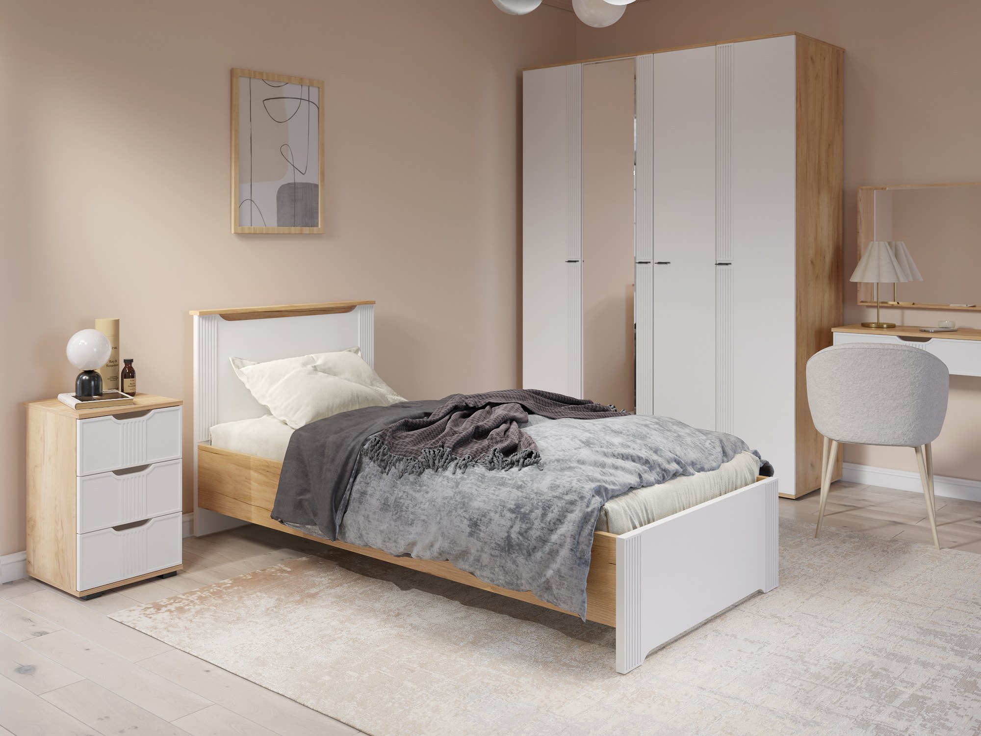 Кровать Эмилия ЭЛ-27 прекрасно впишется в интерьер спальни в современном стиле. Прямые линии фасадов понравятся ценителям минимализма в дизайне. Компактные размеры кровати позволяют установить её в интерьере средней и малой площади. Корпус кровати изготовлен из качественного ЛДСП толщиной 25/16 мм, фасады выполнены из МДФ 25 мм. Размер спального места - 900х2000 мм. Высота изножья 380 мм, изголовья 911мм. Основание кровати - ЛДСП. Рекомендуемый параметры при выборе матраса в мм: 900х2000х160-200. Матрас утопает в основание на 54 мм. Кровать идеально сочетается с прикроватными тумбочками серии Эмилия. Обратите внимание! Матрас в комплект не входит и приобретается дополнительно. Мебель доставляется в разобранном виде, в упаковках.