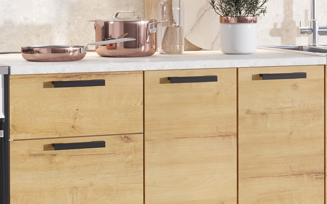 Кухня Хозяюшка 1,5 м Белый гладкий/Дуб вотан ЛДСП Код R0000291434