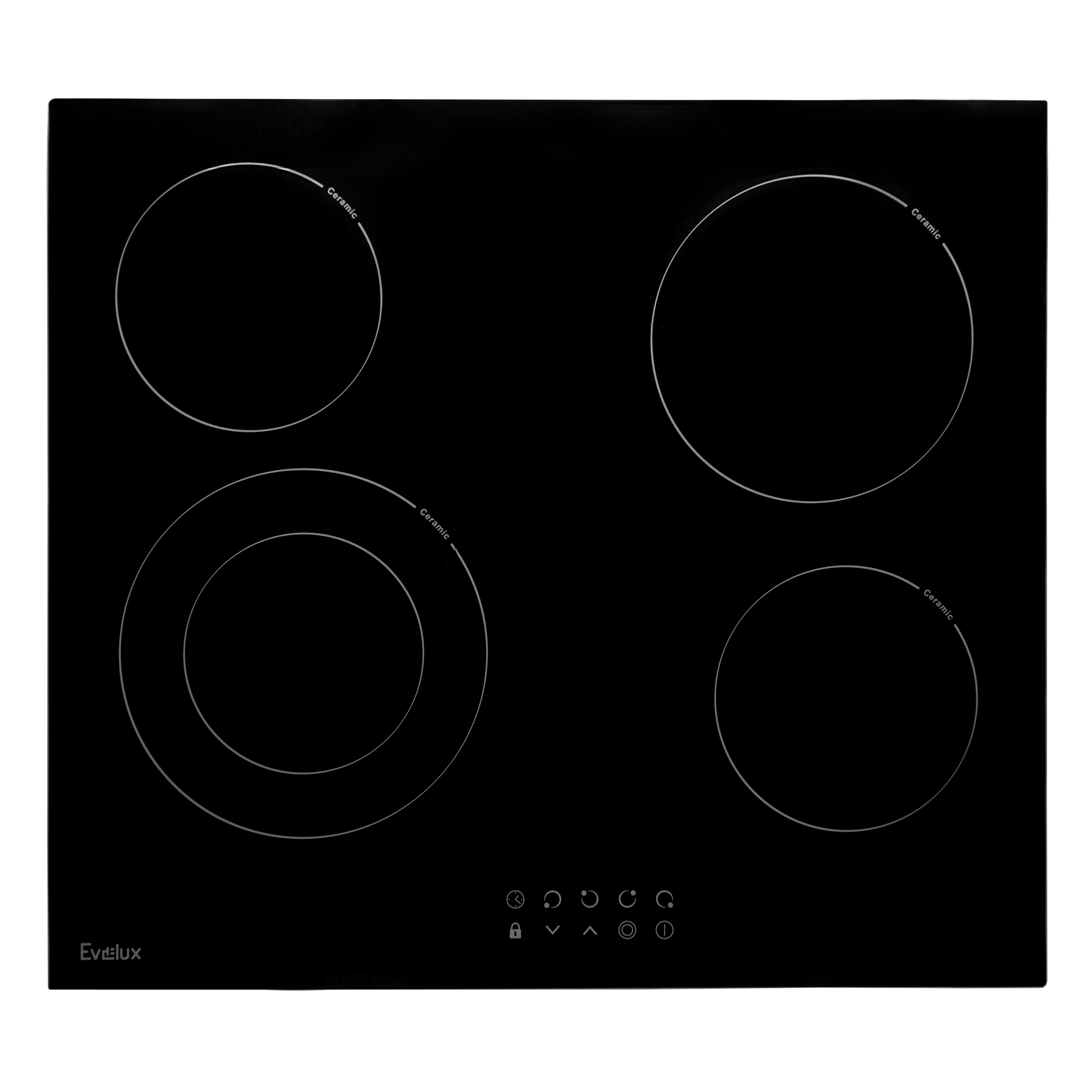 Газовая варочная панель из закаленного стекла, ширина 45 см, 3 высокоэффективные конфорки, сверхмощная конфорка WOK, автоматический электроподжиг, газ-контроль каждой конфорки, передние металлические переключатели, чугунная решетка для посуды, в комплекте - чугунная подставка WOK, адаптер для кофейника, скошенный передний край.