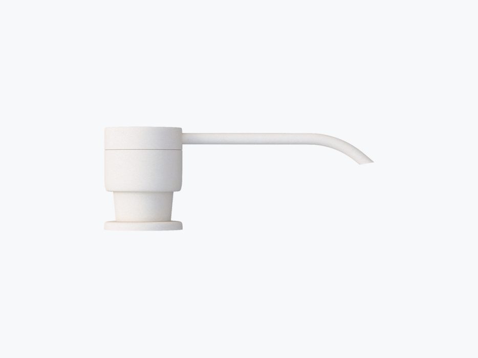 Дозатор для жидкого мыла или моющего средства. Встраивается в кухонную мойку или столешницу. Состоит из мощной пластиковой помпы и пластиковой емкости (колбы) объемом 300 мл. Емкость удобно заполняется сверху. Для монтажа дозатора необходимо отверстие диаметром 30 мм в мойке или столешнице.