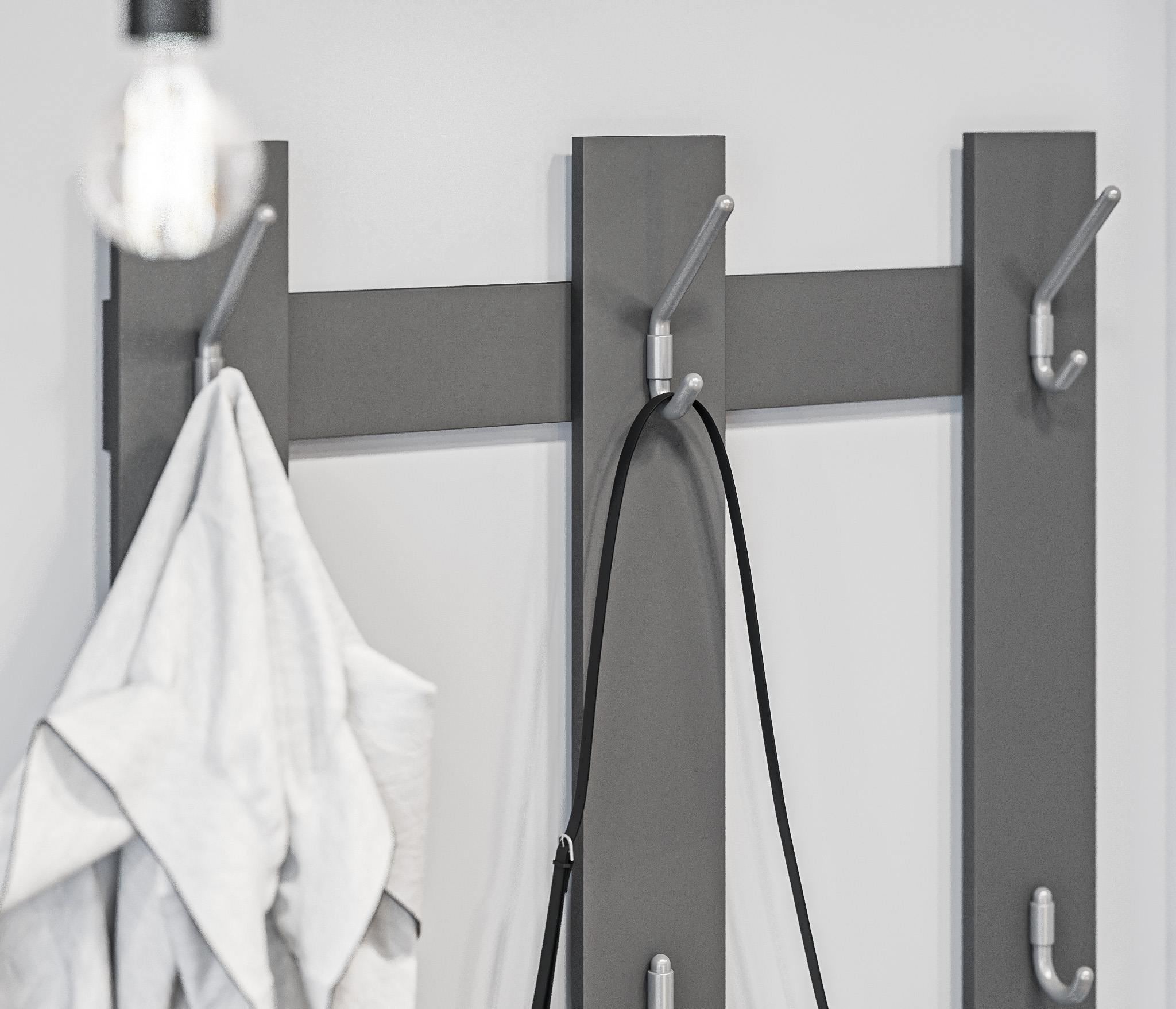 Вешалка имеет размеры 900 мм в высоту, 780 мм в ширину и 32 мм в глубину, что делает ее компактной и прекрасно подходящей для небольших пространств. Она предлагает шесть прочных крючков, на которые можно повесить пальто, шапки, сумки и другие предметы.
