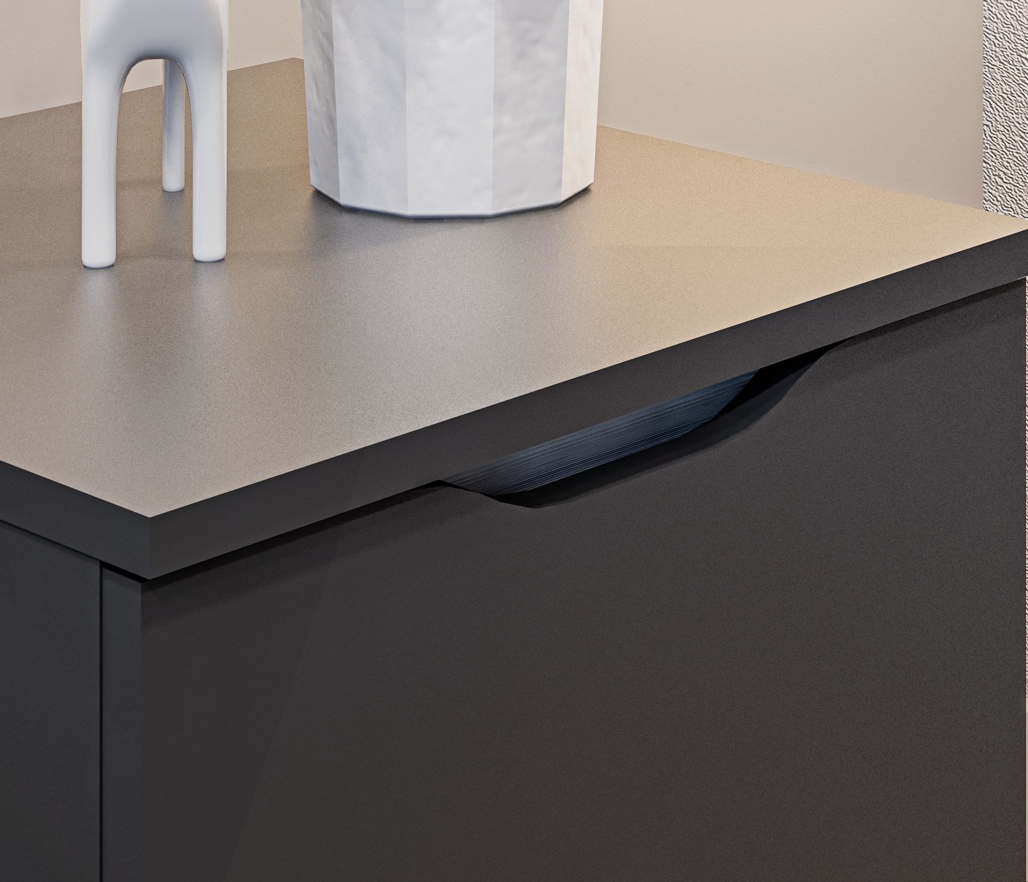 Тумба имеет компактные размеры: высота 532 мм, ширина 390 мм и глубина 393 мм, что позволяет ей идеально вписаться рядом с кроватью. Она предлагает удобное место для хранения предметов, которые хотите иметь под рукой во время сна.