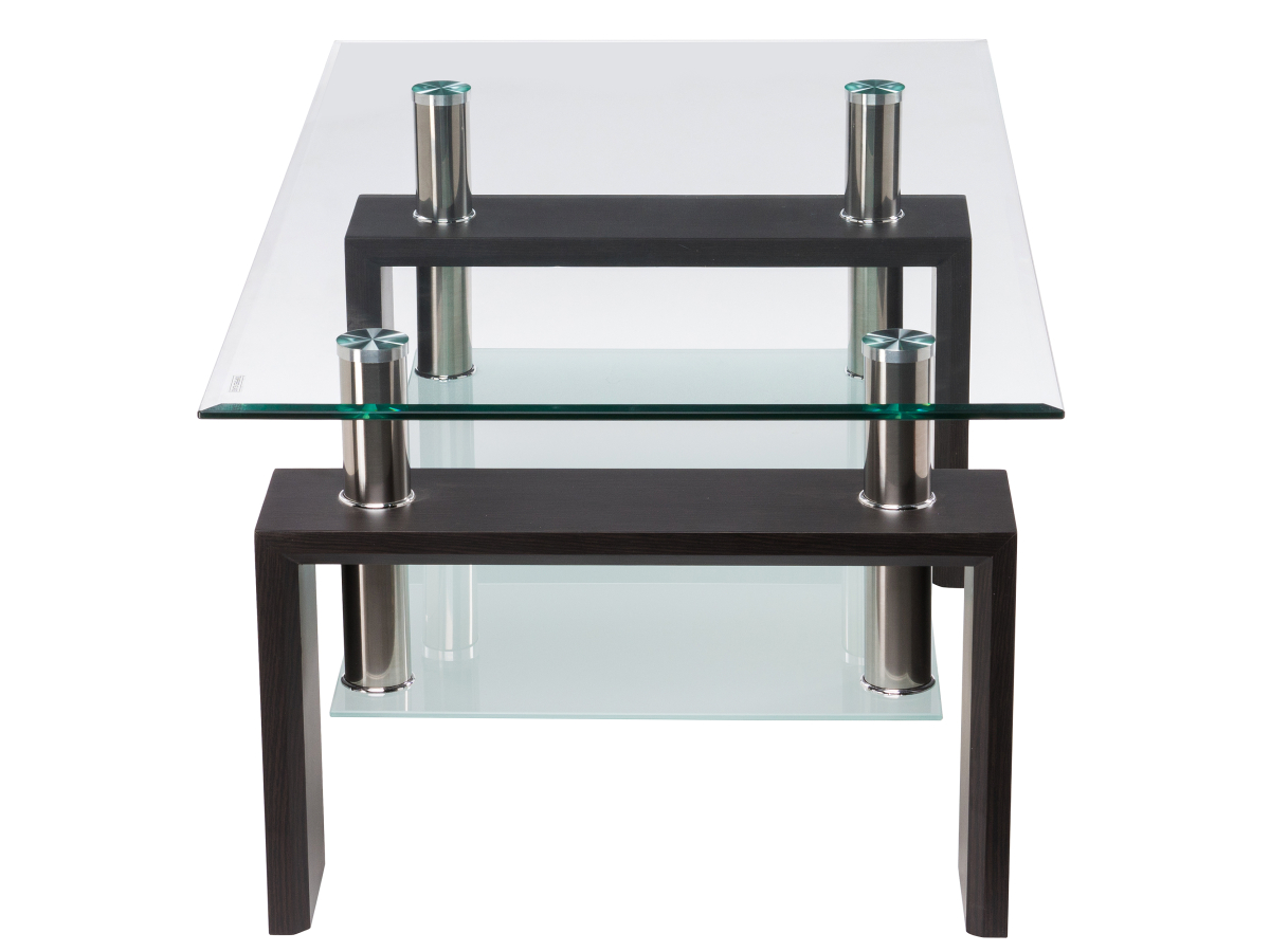 Журнальный столик CT1-052 110х60х45 цвет венге в современном стиле. Материал каркаса - ЛДСП и металл, столешницы из стекла 6мм.