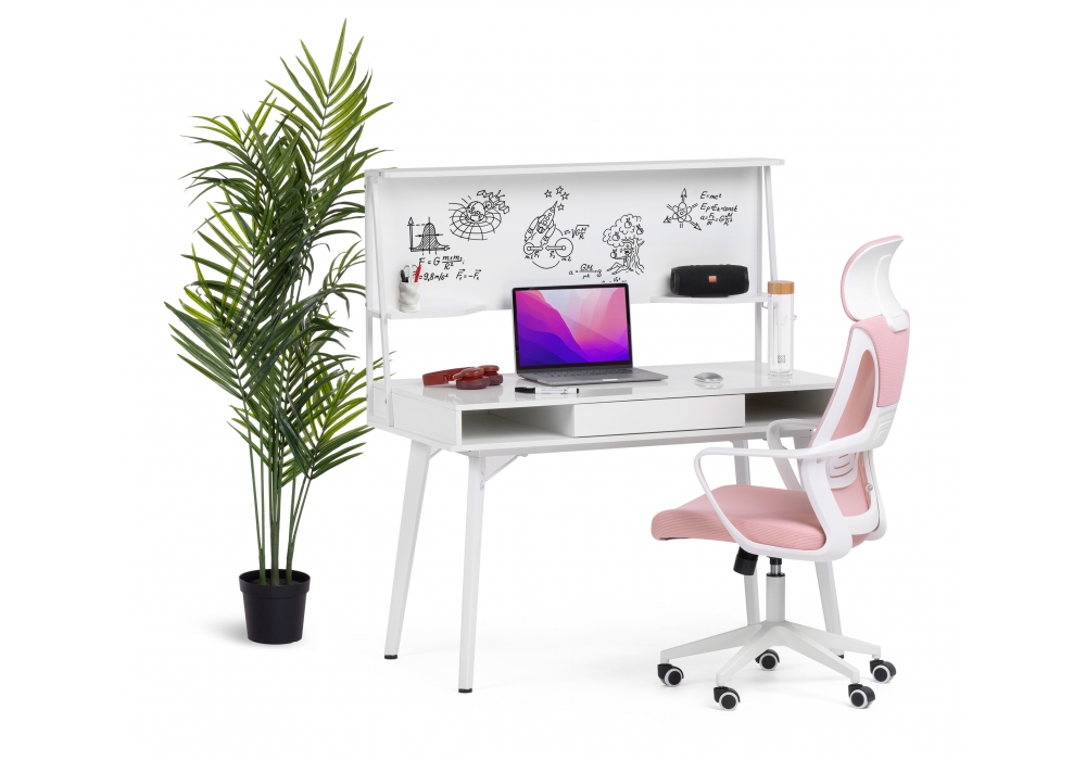 Используйте для записи только специальные маркеры, губки-стиратели и специализированные спреи. Материал каркаса - МДФ / Металл; Материал ножек - Металл; Материал столешницы - МДФ; Цвет каркаса - Белый; Цвет ножек - Белый; Цвет столешницы - Белый; Цвет подстолья - Белый; Ширина - 60; Высота - 134; Высота стола - 76; Длина - 120.