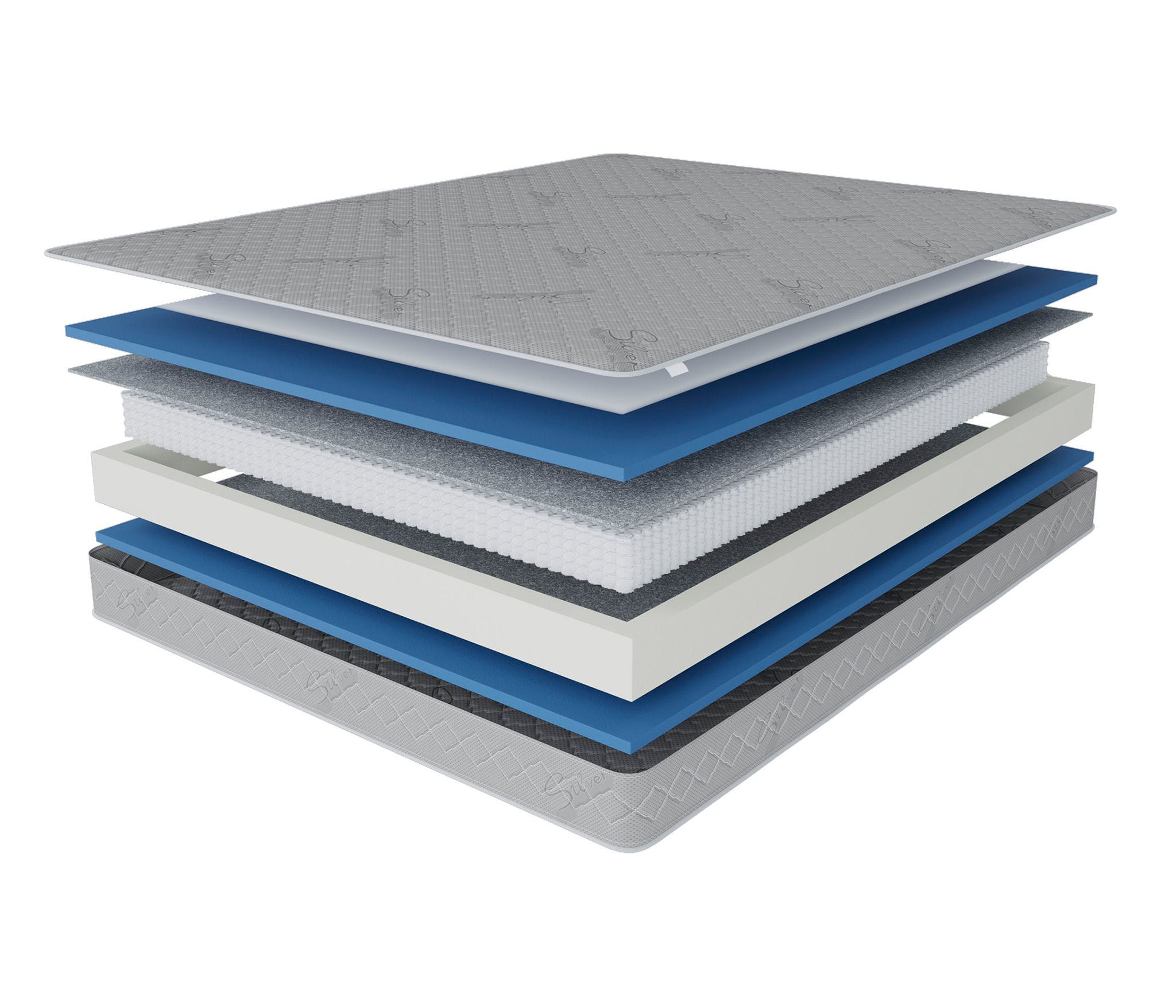 - термовойлоку, который покрывает пружинный блок с обеих сторон. Экологически чистый и прочный, воздухопроницаемый материал защищает комфортные слои от истирания пружинным блоком и распределяет нагрузку;