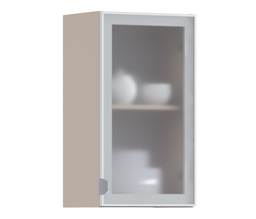 Регина РП-40 Полка Песочный/Витрина алюминий Белый глянец/стекло Сатин (Белый Глянец) Код 00000307711