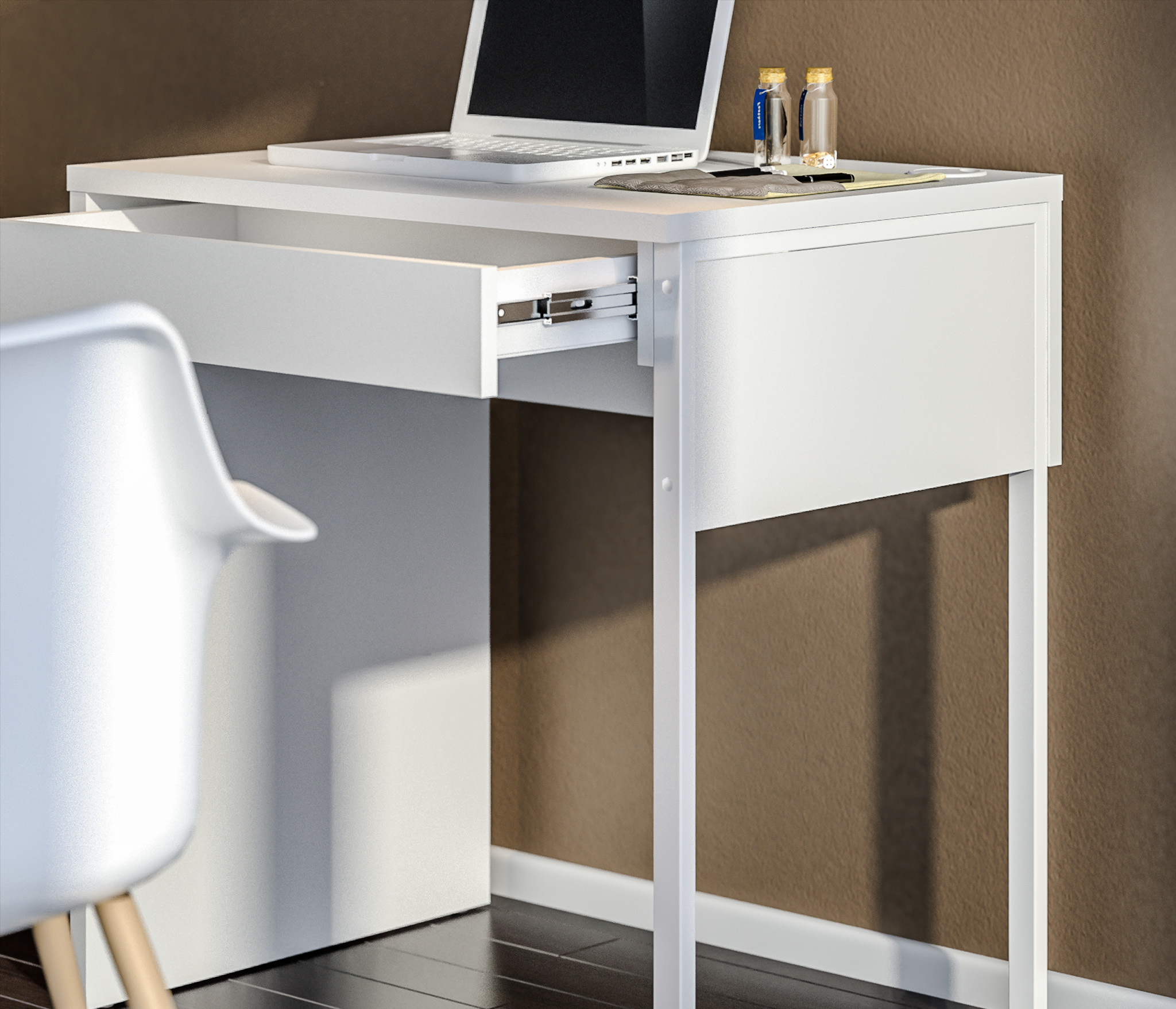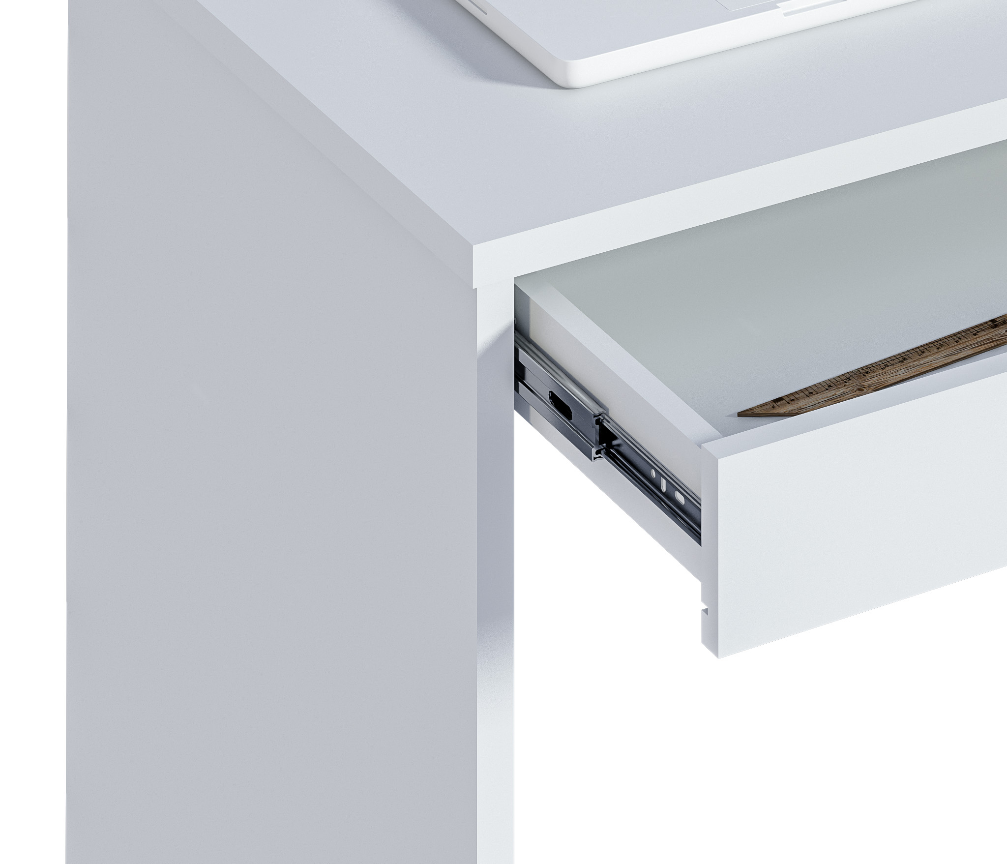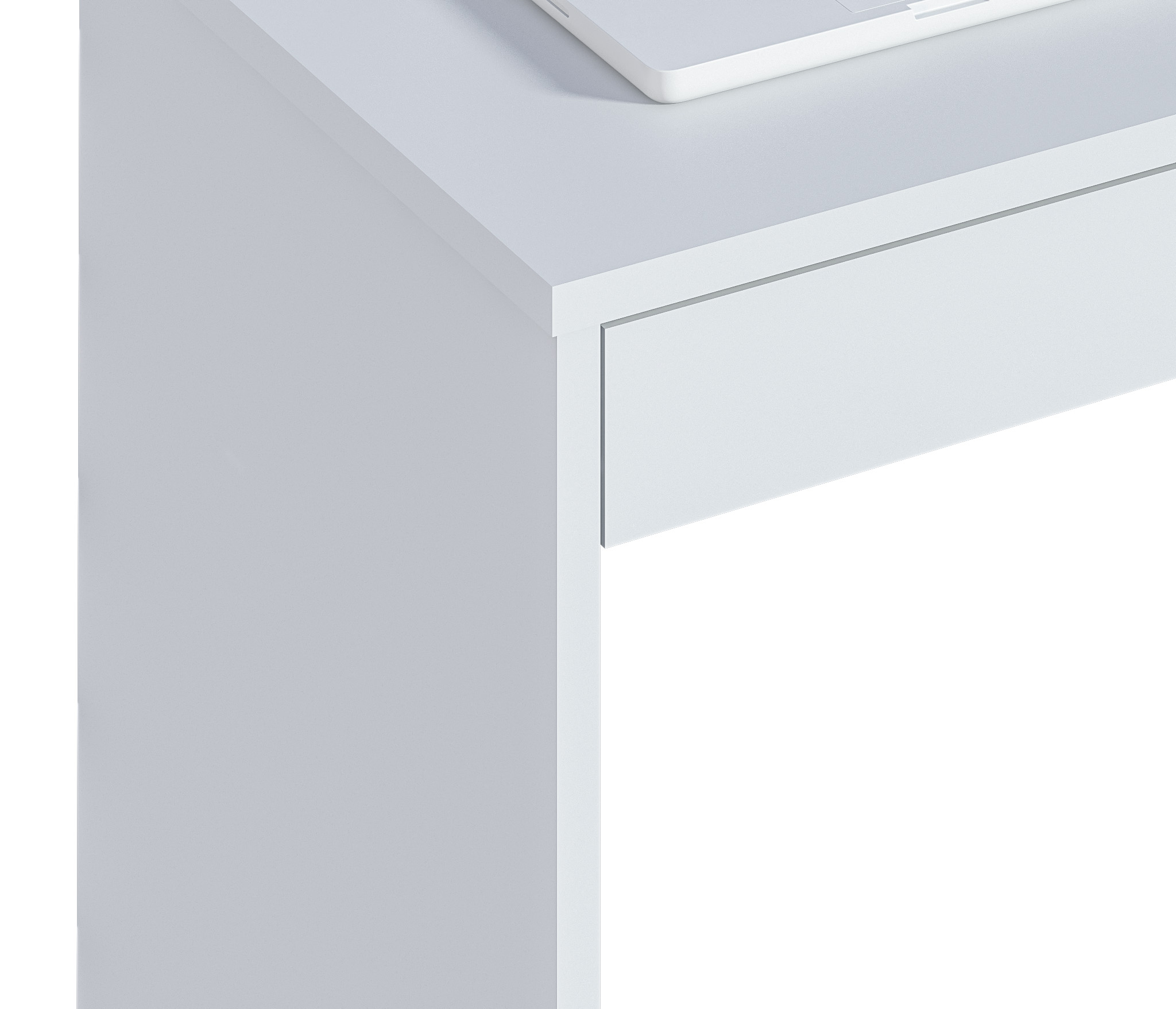 Стол изготовлен из высококачественного ЛДСП белого цвета, этот материал обеспечивает прочность и долговечность стола, а также делает его легким в уходе.