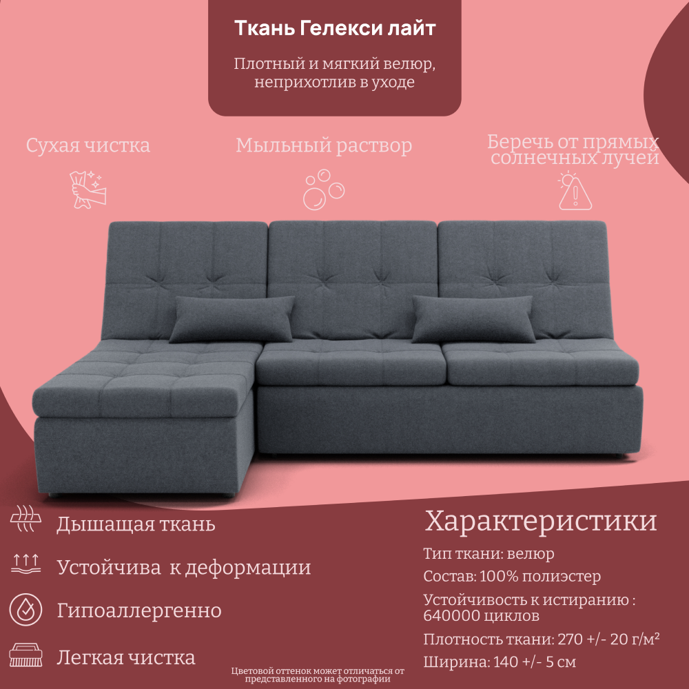 Отзывы о Столплит Угловой диван Калифорния-2 ППУ, велюр Серо-голубой