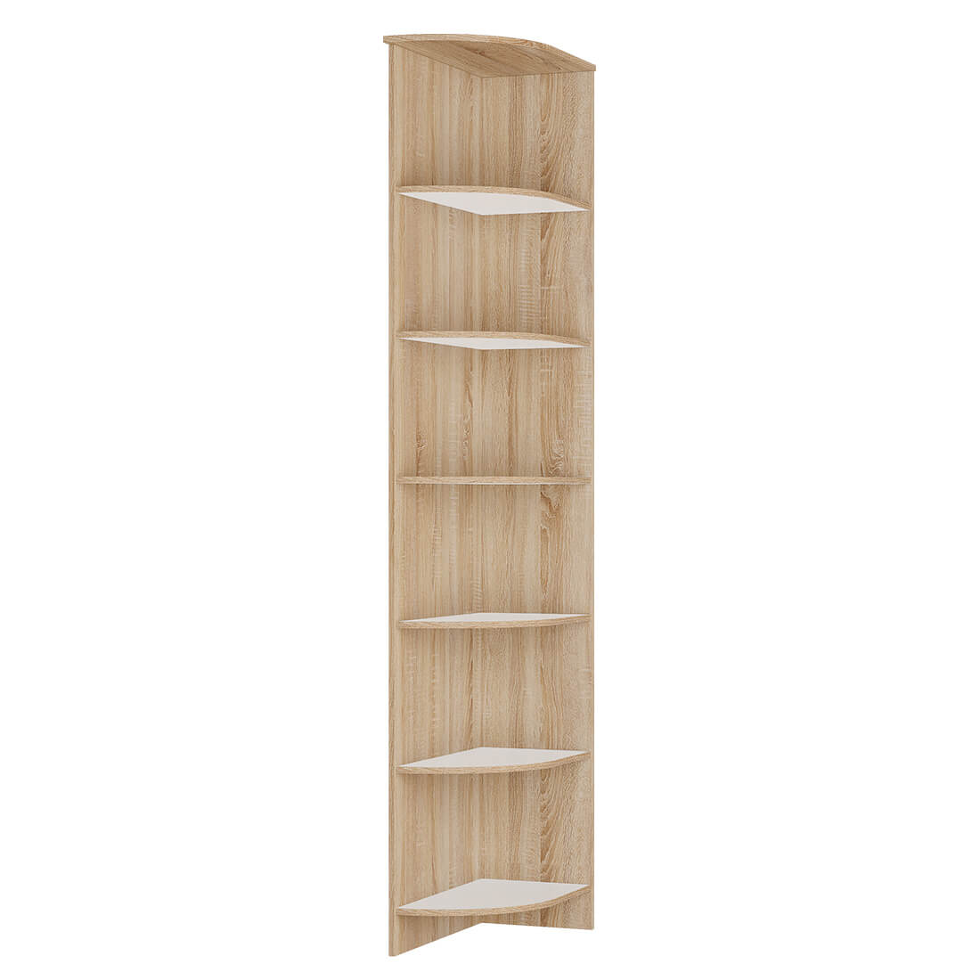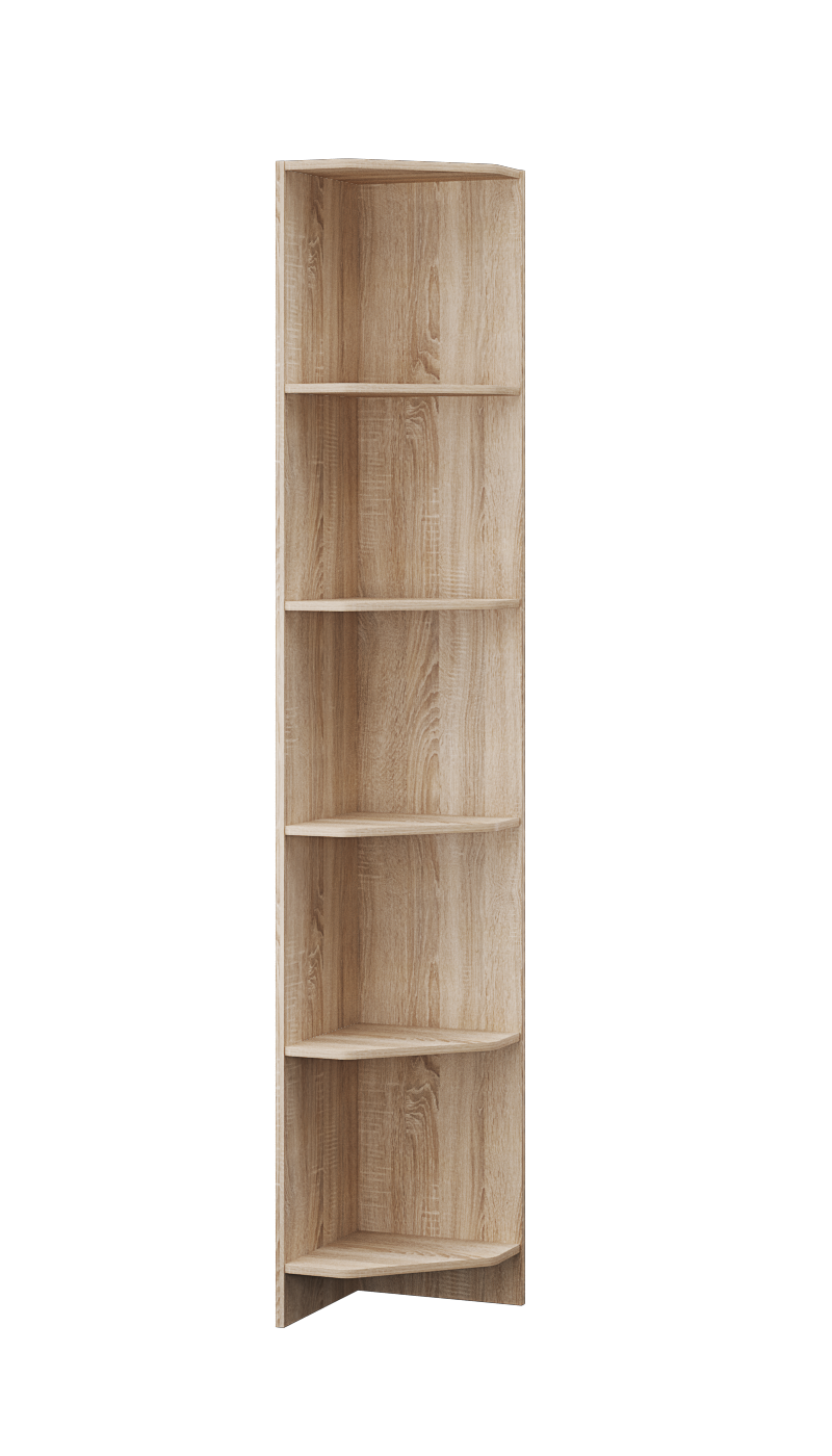 Угловой стеллаж из коллекции Сакура завершит шкафную группу в Вашей спальне и пригодится для того, чтобы разместить предметы декора, памятные вещицы, рамки с фото, цветы и книги. Несмотря на небольшой размер, модуль достаточно вместителен. Благодаря открытому типу хранения Вы украсите интерьер Вашей комнаты и добавите пространству "воздуха". Декор "дуб сонома" имитирует натуральную древесную текстуру.