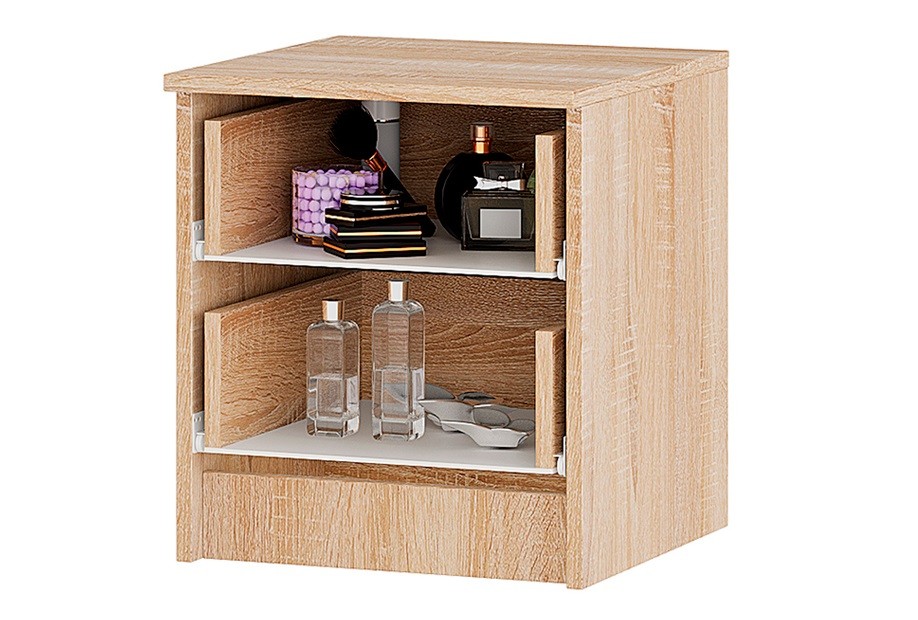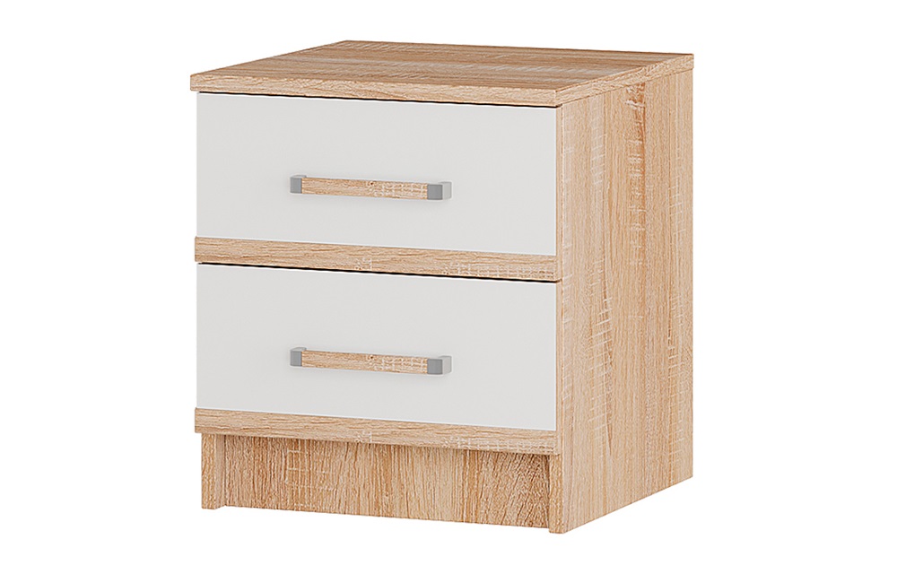 Небольшие прикроватные тумбы Сакура гармонично завершат мебельный комплект в спальне и послужат местом для установки ночного светильника и хранения различных мелочей, так необходимых перед сном и после пробуждения. Модуль оснащен двумя выкатными ящиками на роликовых направляющих. Корпус выполнен в декоре "дуб сонома", а фасады ящиков - в белой пленке.