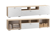 Гостиная серии «Скайлайн» станет незаменимым решением для людей, живущих полной жизнью и желающих сделать свой дом не только комфортным, но и практичным. Коллекция представлена разнообразием открытых и закрытых модулей, которые можно комбинировать между собой в различных вариациях. Напольные тумбы с ящиками можно использовать не только для хранения не предназначенных для лишних глаз вещей, но и как подставку под ТВ и другую технику. Подвесные полки с дверцами дарят дополнительное пространство для хранения. Открытые полки позволяют расположить различные предметы интерьера, добавляя комнате уюта: статуэтки, вазы, картины, посуду. Благодаря современному цветовому решению, интересной структуре фасада и высокому качеству изделия, гостиная серии «Скайлайн» будет радовать Ваш взор на протяжении долгих лет.
