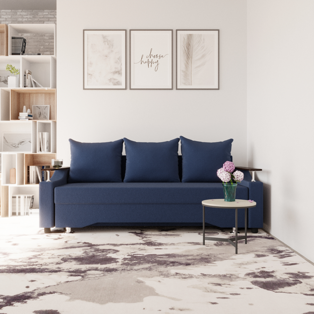 Достоинства: ровное спальное место, лёгкость процесса трансформации дивана, ёмкий бельевой ящик, прочность механизма, долговечность конструкции.