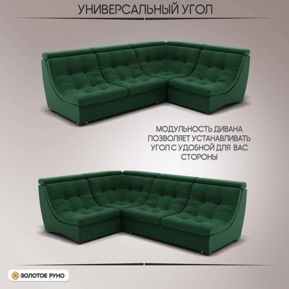 Отзывы о Столплит Угловой Диван Монако-3 ППУ, велюр Зеленый