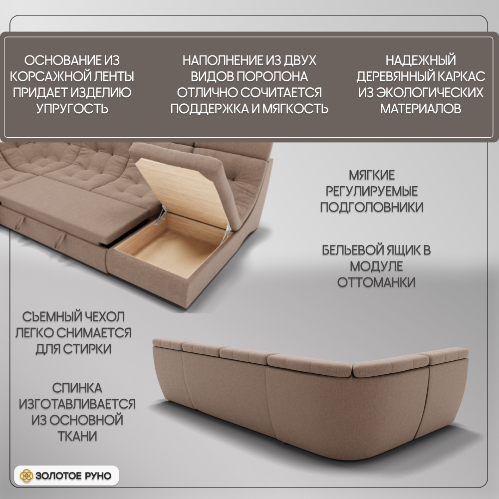 Отзывы о Столплит П-образный диван Монако-4 ППУ, велюр бежевый/коричневый