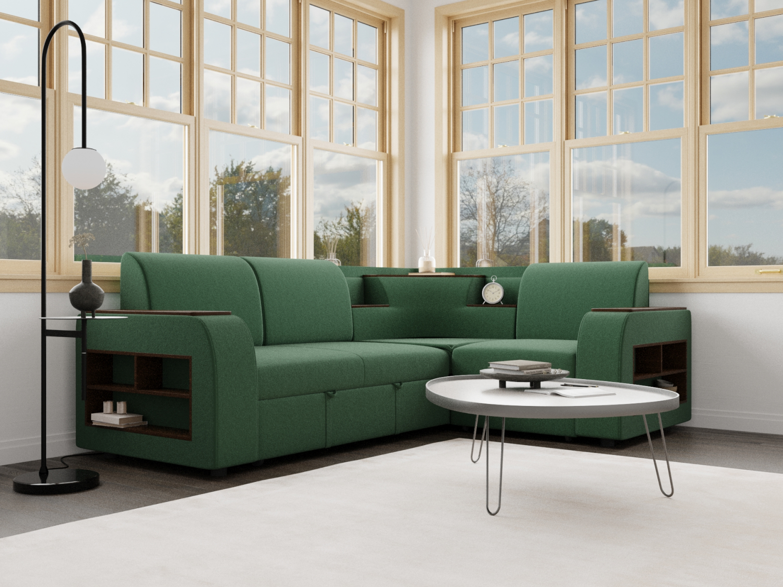 Отзывы о Столплит Угловой диван Фараон ППУ, велюр Зеленый