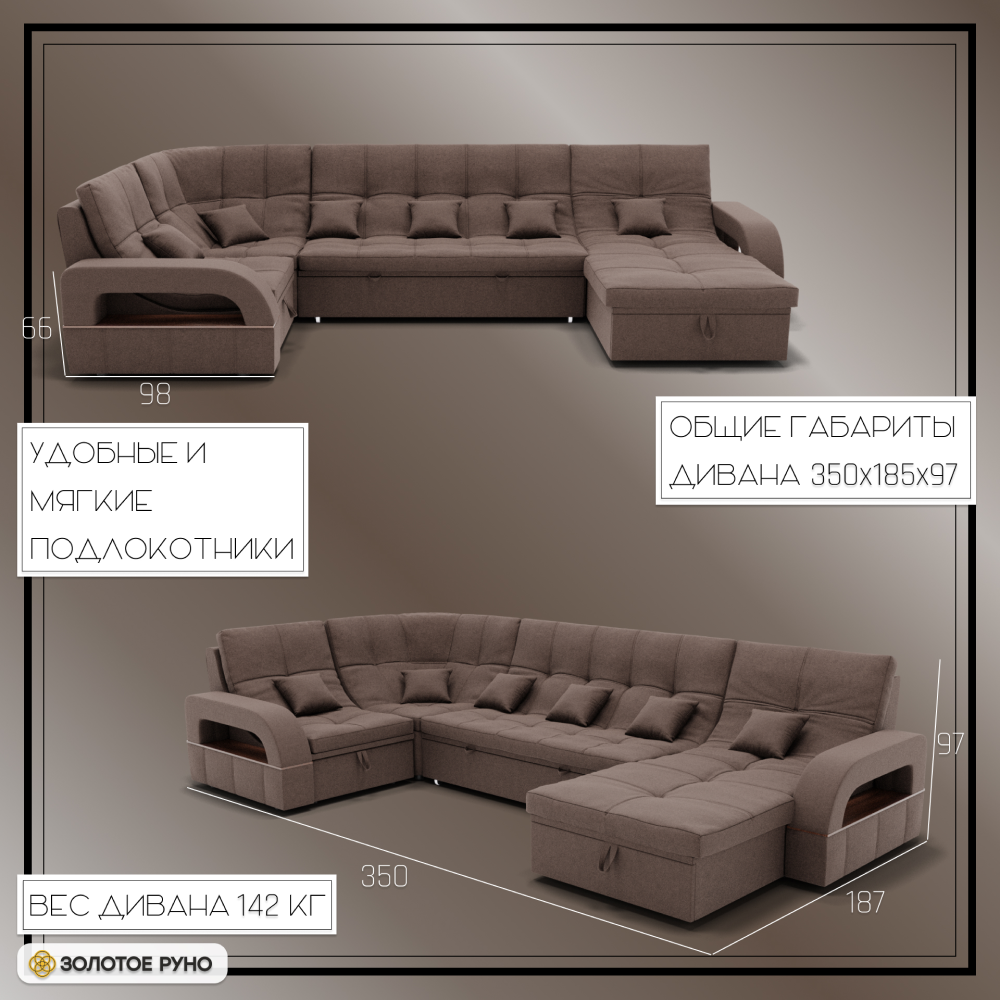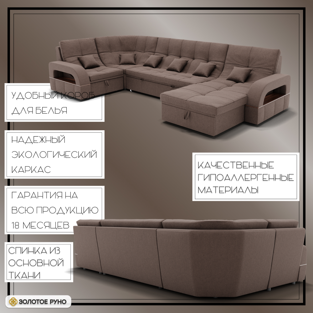 Отзывы о Столплит П-образный диван Майами-4 ППУ, велюр Коричневый