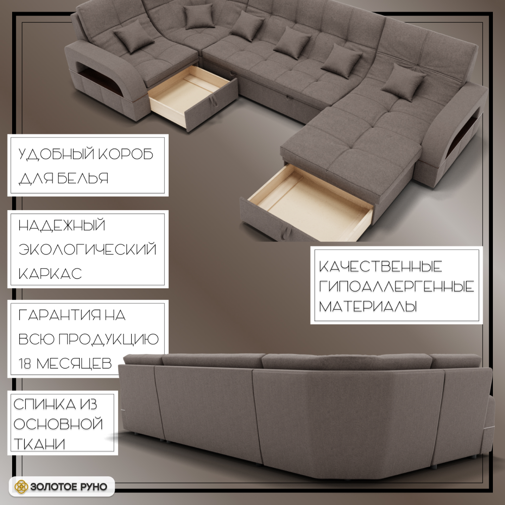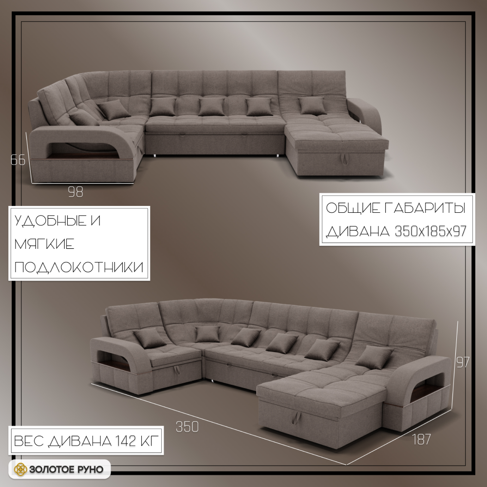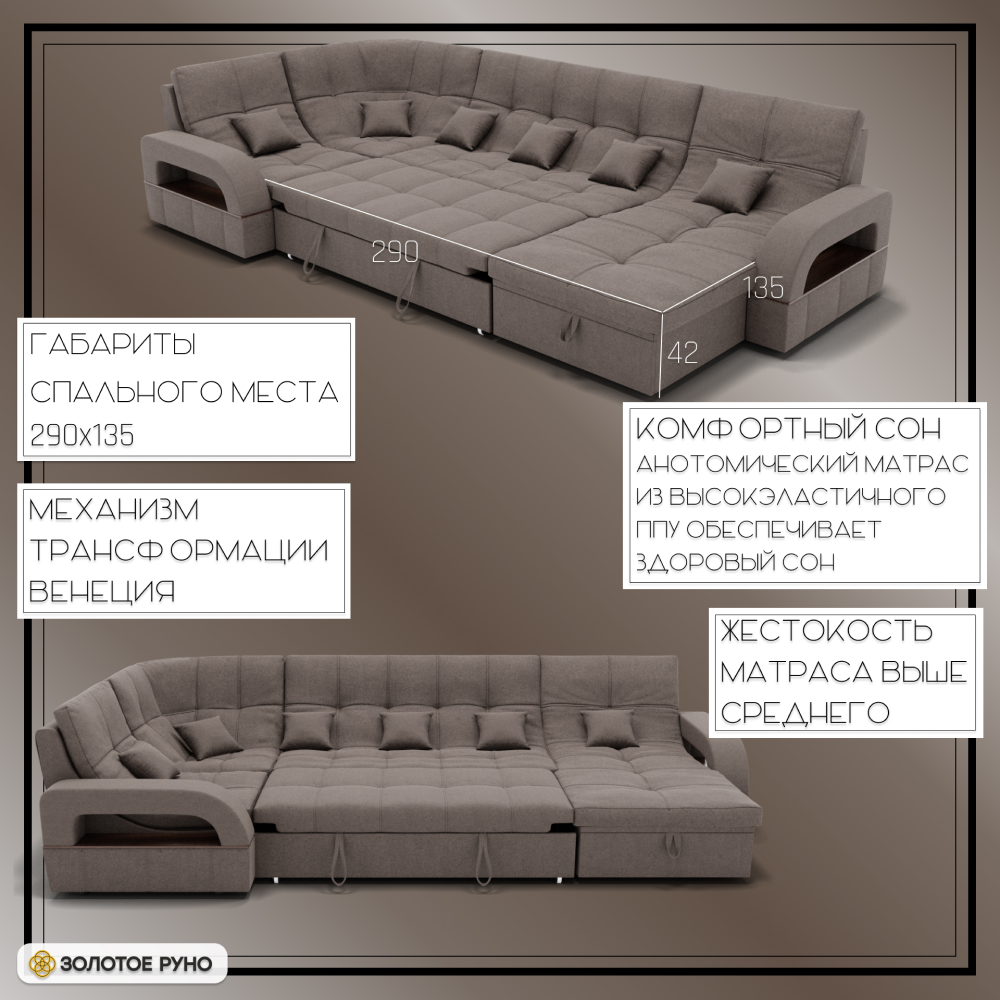 Отзывы о Столплит П-образный диван Майами-4 ППУ, велюр Коричнево-серый