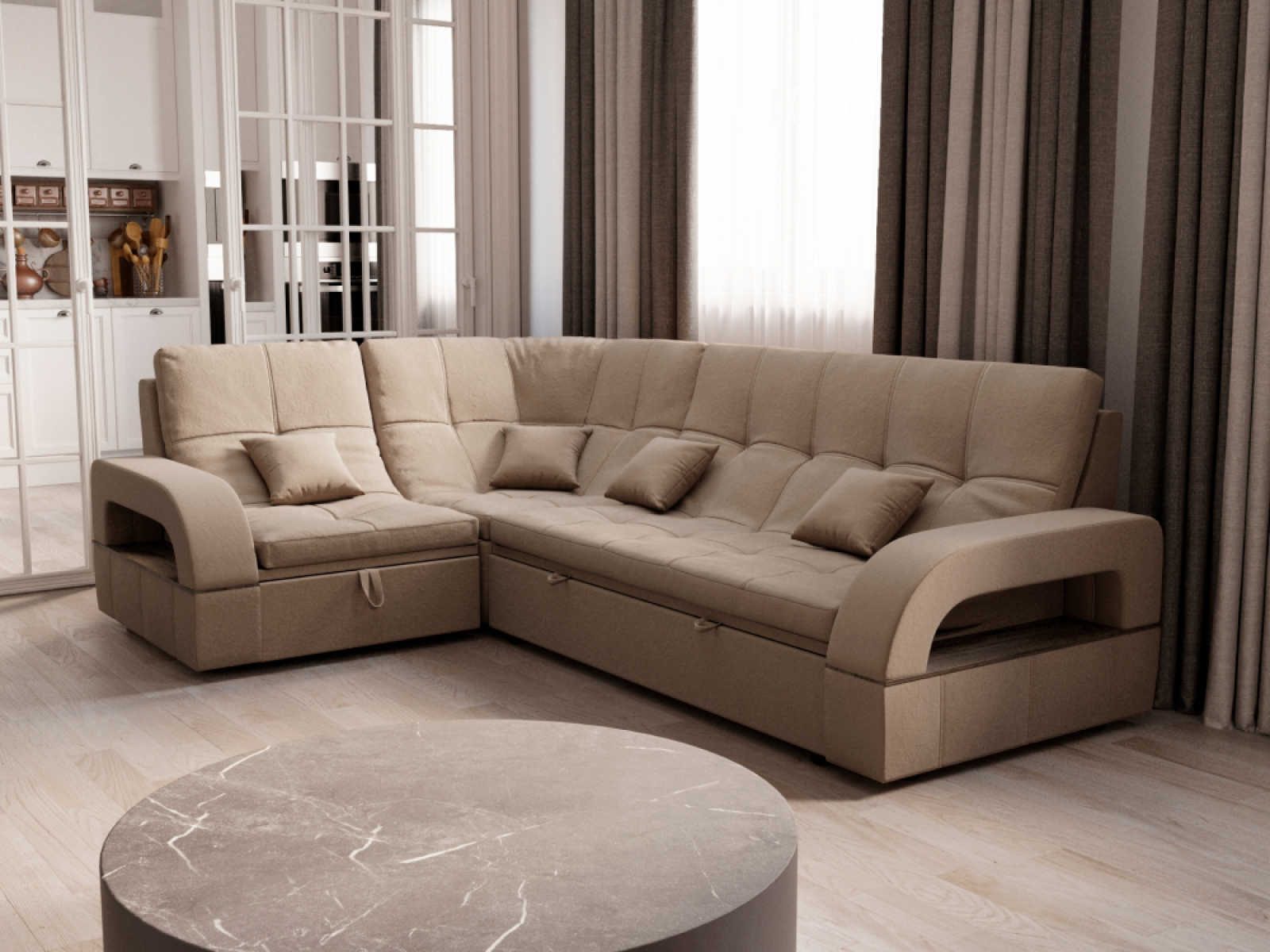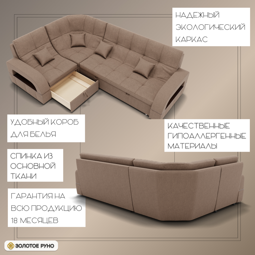 Отзывы о Столплит Угловой диван Майами-3 ППУ, велюр бежевый/коричневый