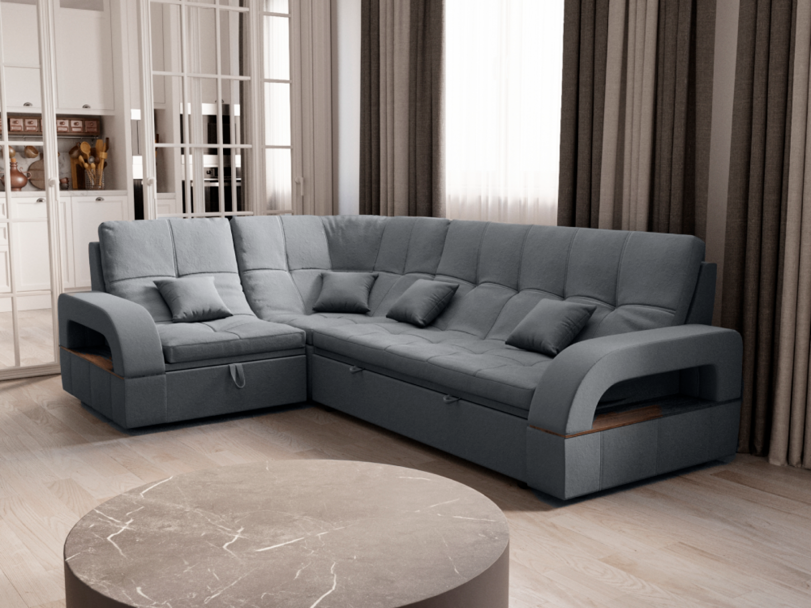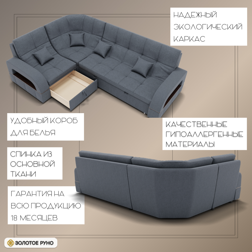 Отзывы о Столплит Угловой диван Майами-3 ППУ, велюр Серо-голубой