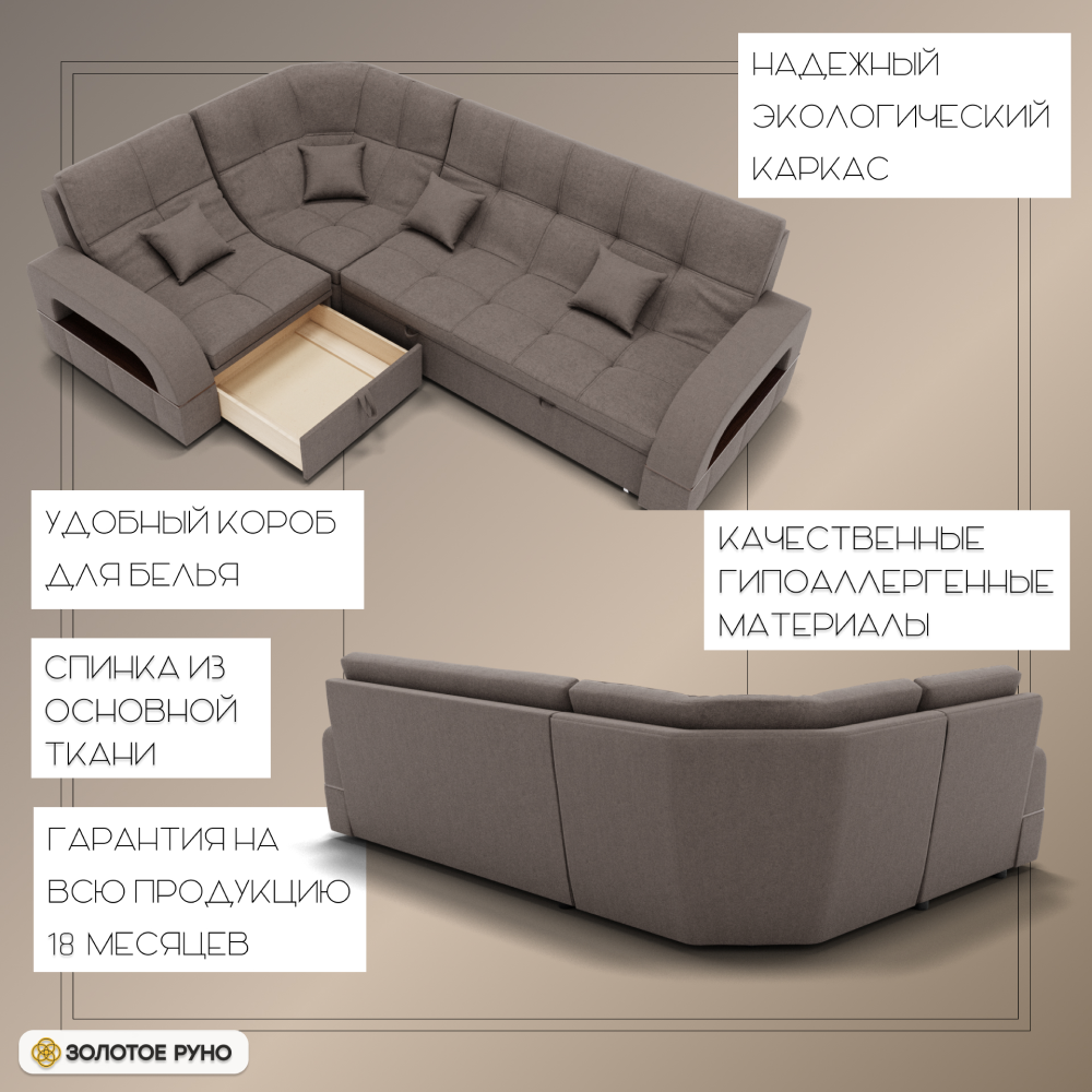 Отзывы о Столплит Угловой диван Майами-3 ППУ, велюр Коричнево-серый