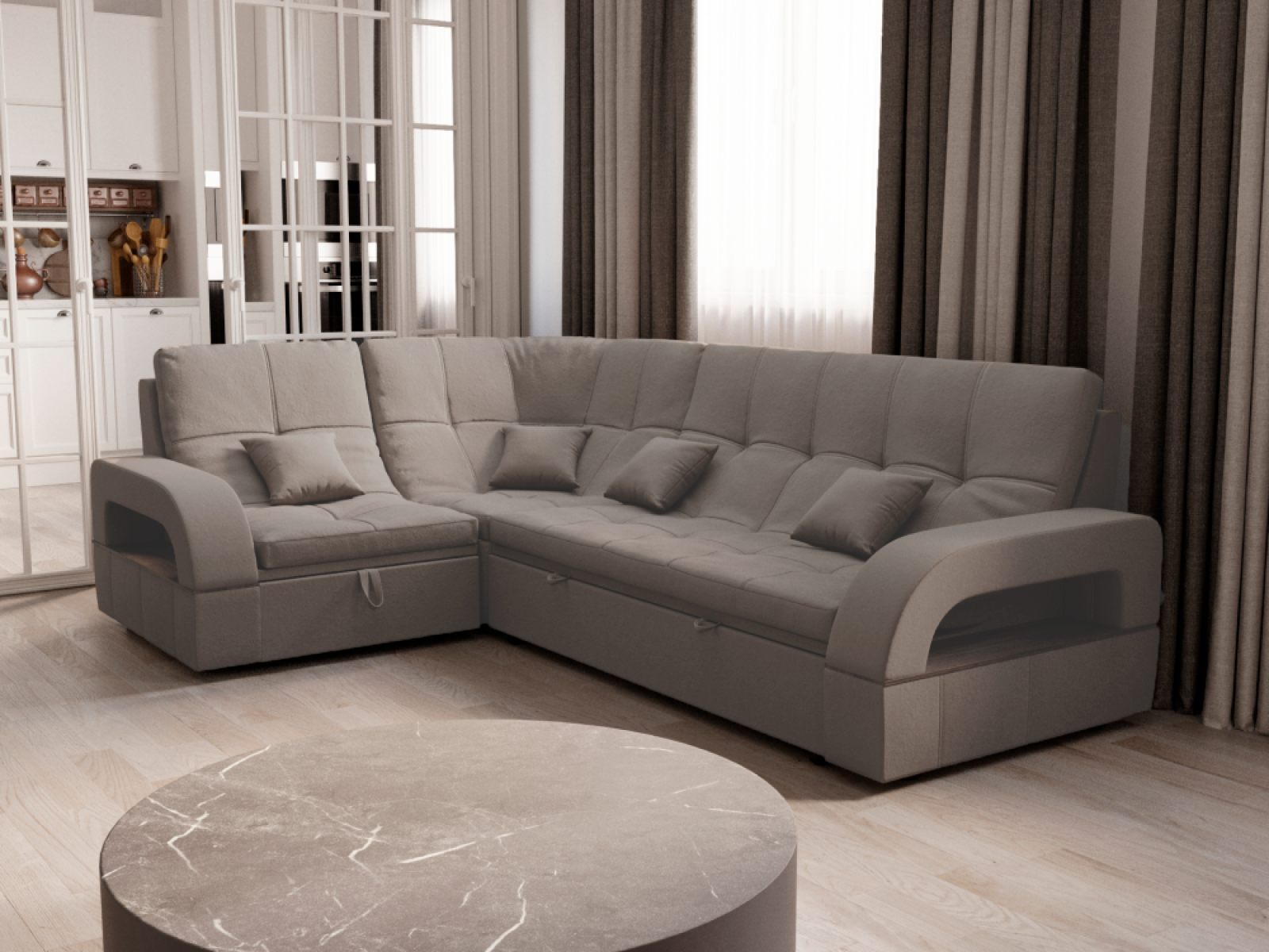 Благородная фактура обивки и современный дизайн отлично дополнят ваш интерьер.