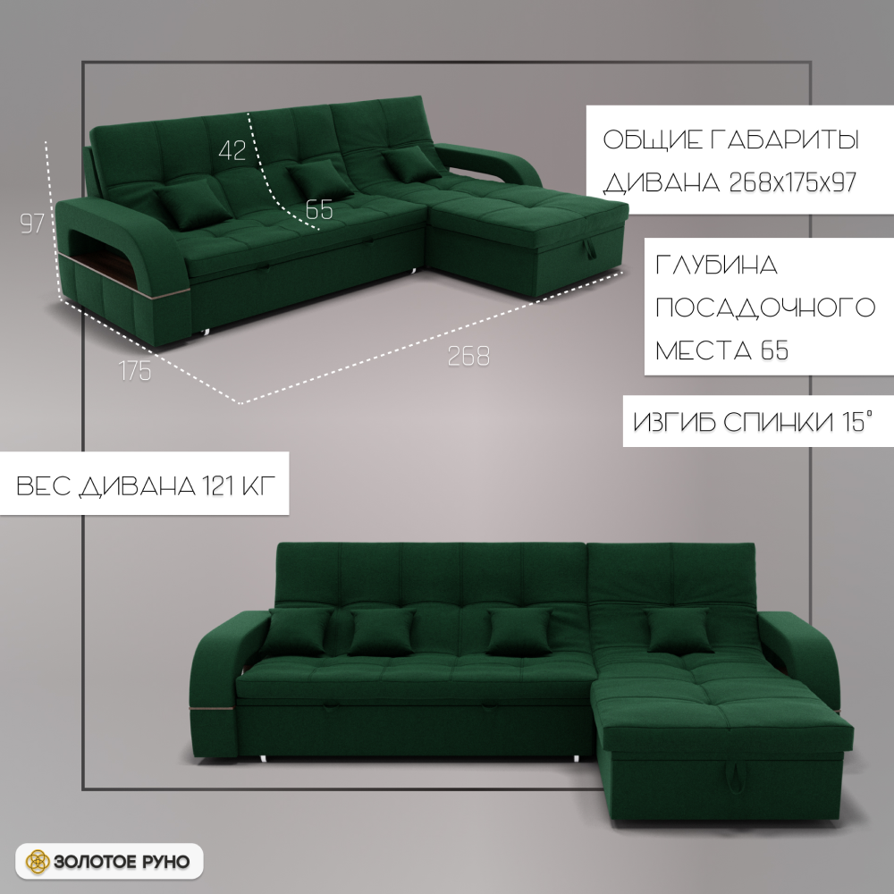 Отзывы о Столплит Угловой диван Майами-2 ППУ, велюр Зеленый