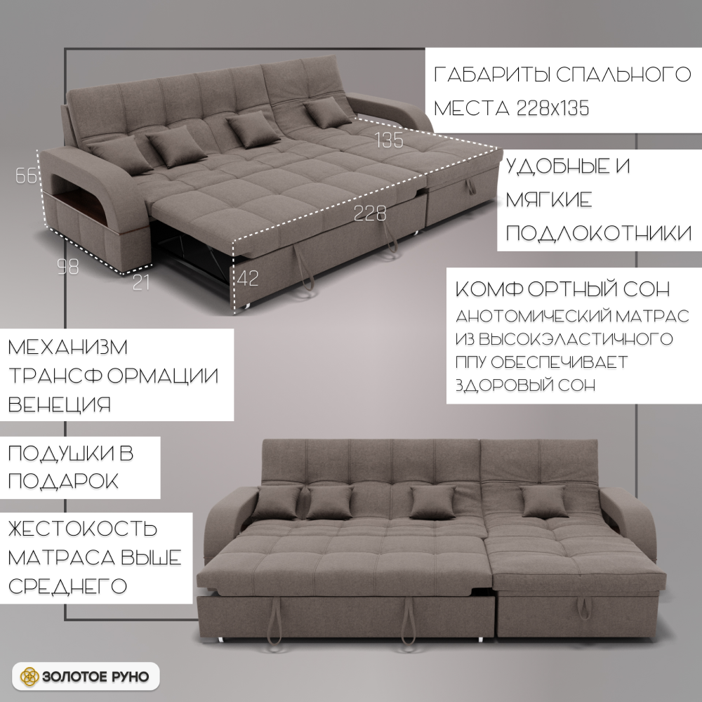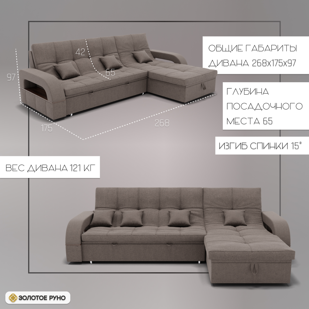 Отзывы о Столплит Угловой диван Майами-2 ППУ, велюр Коричнево-серый