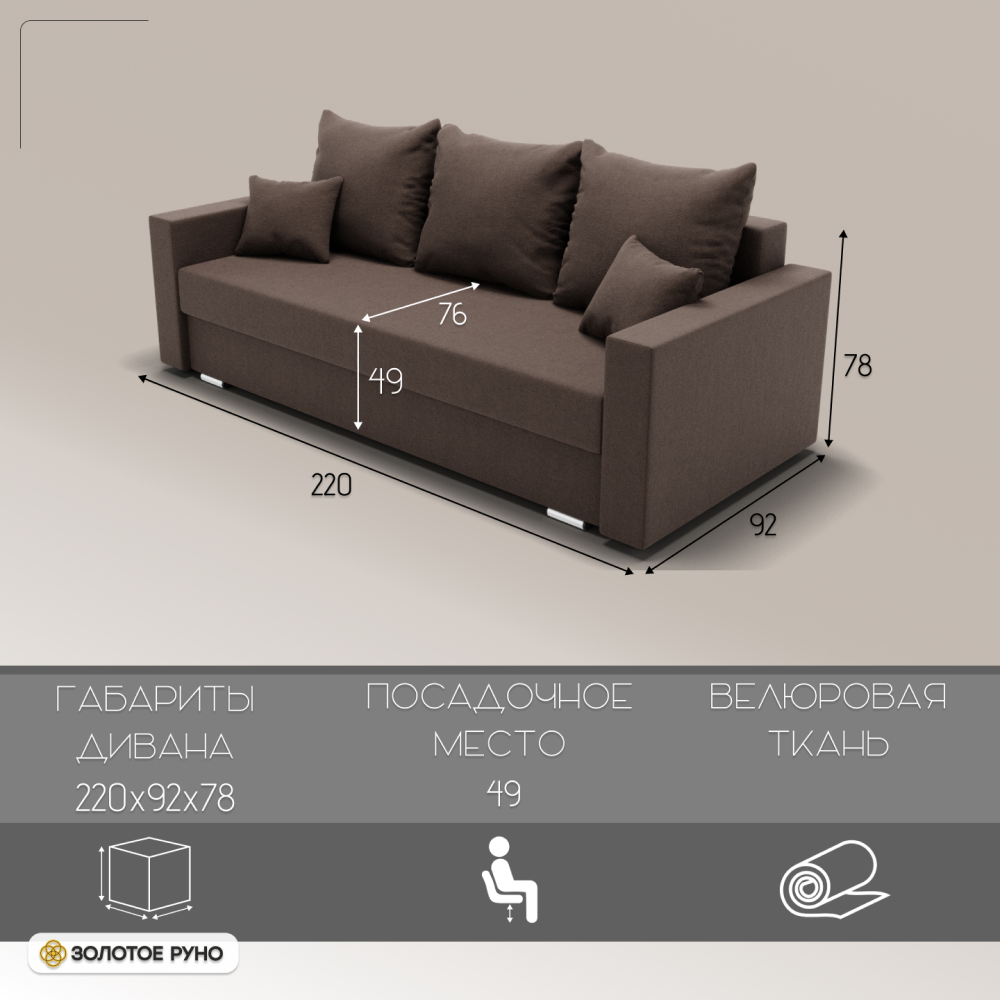 Прямой диван Олимп-1 ПБ, велюр (Коричневый) Код I0000364918