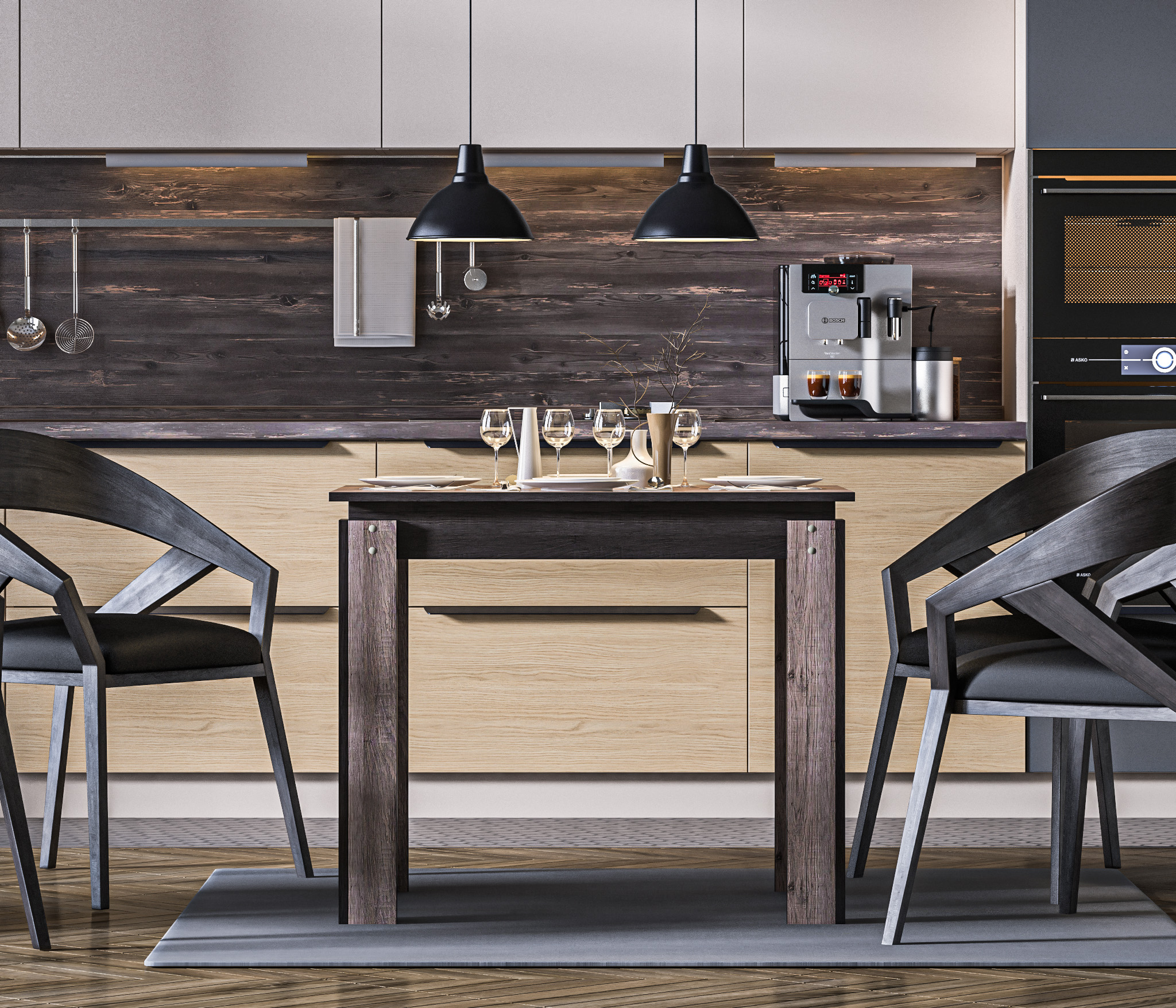 Компактный стол подойдет ко многим интерьерам. Царговый пояс контрастного цвета "венге темный" яляется интересным цветовым акцентом. Материал - ЛДСП. Размер 900*600мм, высота 750мм.