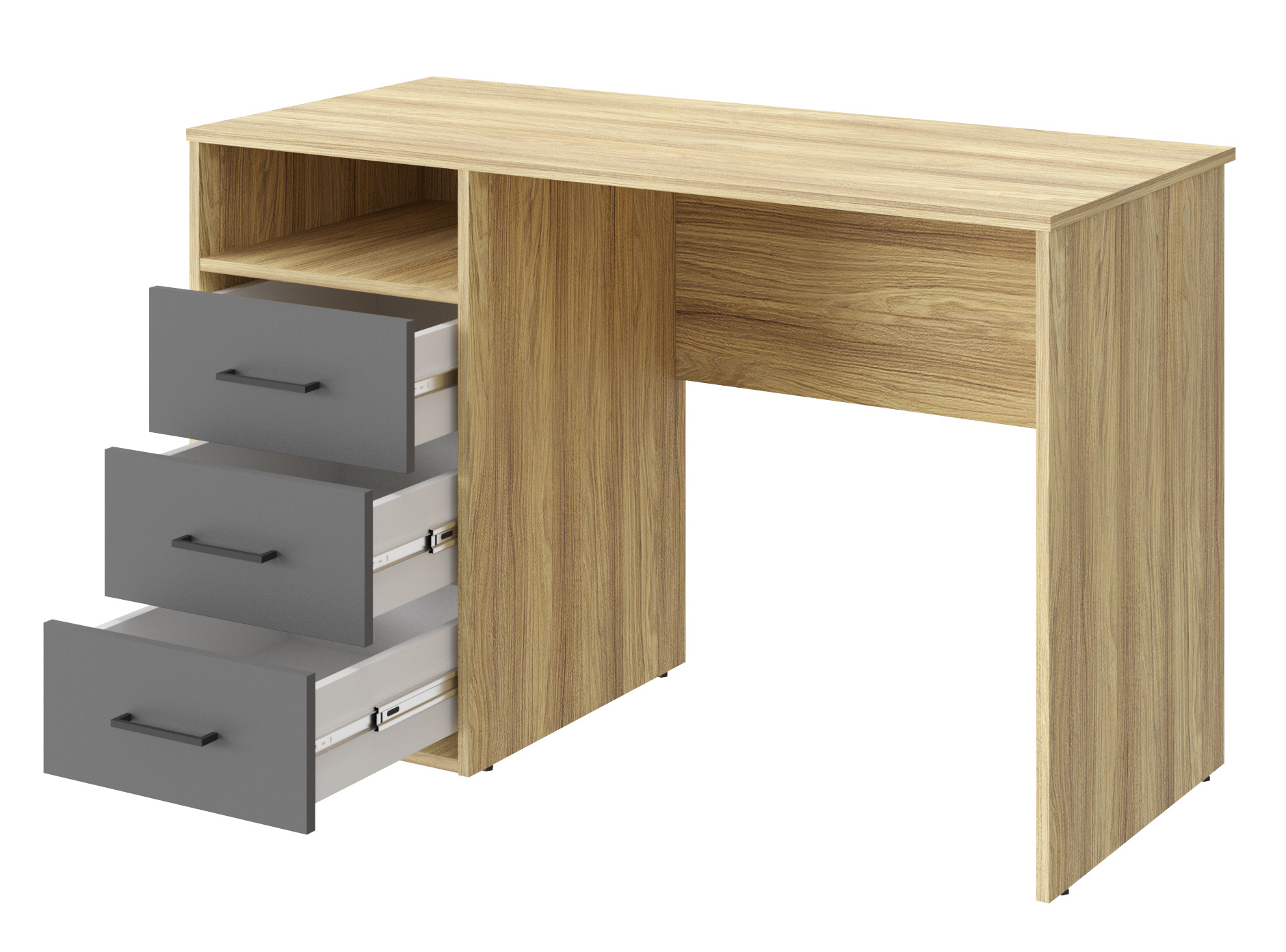 Письменный стол Оскар ОС-21 идеально подойдет для создания рабочего места в небольшом помещении. Благодаря своей универсальности стол с ящиками и нишей может использоваться как компьютерный, офисный, письменный или стол для ноутбука. С его помощью вы сможете организовать порядок на своем рабочем месте. Стол гармонично впишется в любой стиль интерьера. Современный и простой дизайн делает его идеальным для использования дома и в офисе. Свес крышки в 30 мм обеспечит прилегание к стене с любым плинтусом. Фурнитура: телескопические направляющие полного выдвижения без доводчиков, ручки пластик. Регулируемые опоры позволяют компенсировать возможные неровности пола.