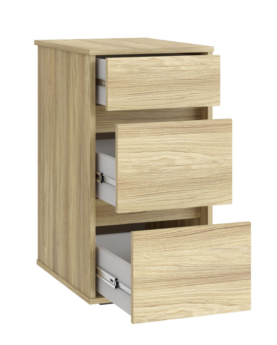 Тумба Оскар ОС-10 выполнена в минималистичном дизайне, что придаст лаконичность вашему интерьеру. Оснащена тремя ящиками на телескопических направляющих полного выдвижения без доводчиков. Функциональная тумба для рабочего места станет неотъемлемой частью Вашего дома, так как вместительные ящики полного выдвижения позволят хранить в них дорогие для Вас вещи. Отсутствие лицевой фурнитуры подчеркнет индивидуальность интерьера Вашего дома, детской комнаты, а также послужит функциональным местом для хранения документов в рабочем кабинете. Тумба с ящиками - это удобное дополнение к письменному или компьютерному столу, прекрасно подойдет к столам ОС-22, ОС-25. Регулируемые опоры позволяют компенсировать возможные неровности пола.