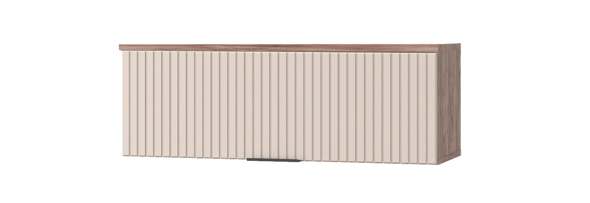 Выполнена в сочетании двух актуальных декоров - теплого древесного "дуба табачного" и пастельного "бисквита" с геометрическим декором.