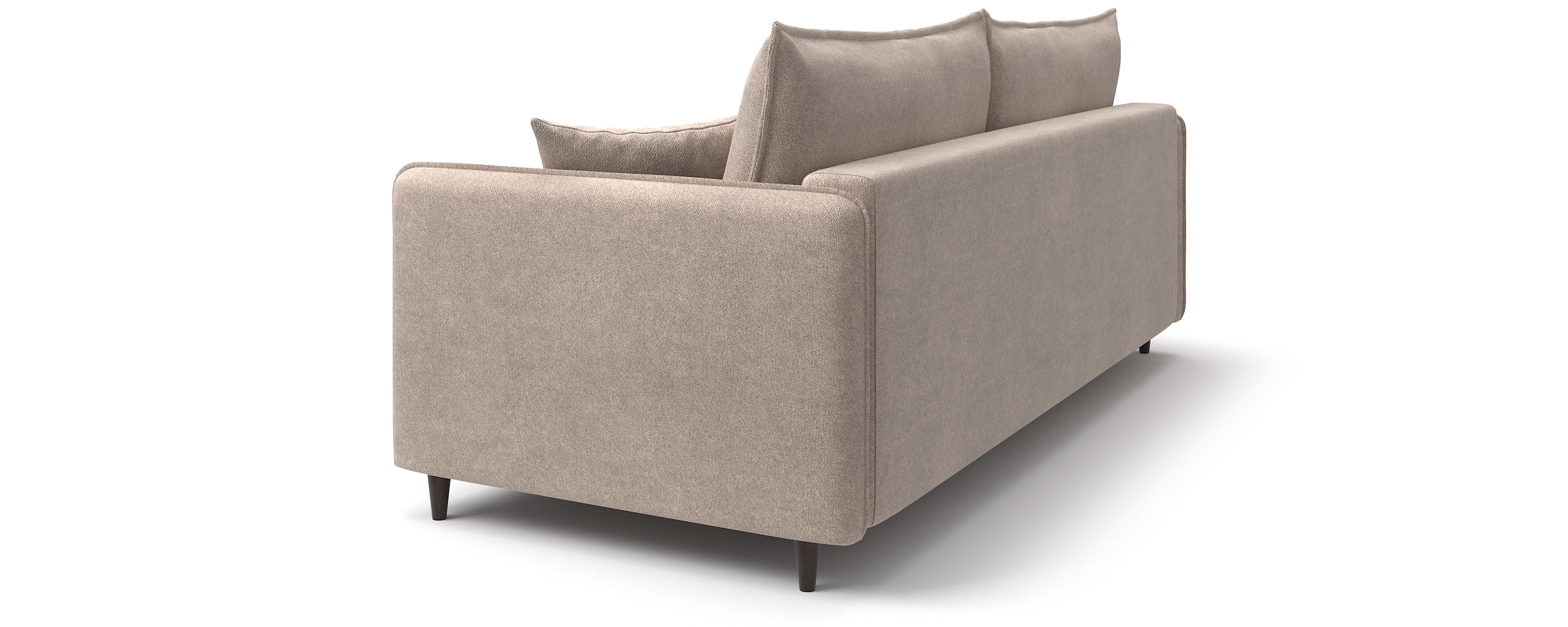 Диван-кровать «Фьорд» сочетает в себе функциональность и лаконичный внешний вид. В его дизайне присутствуют все основные элементы, свойственные скандинавскому стилю: тонкие подлокотники и мягкие подушки с отделкой модным «французским швом»; пара дополнительных миниатюрных подушек для украшения интерьера; декоративные складки в местах скругления подлокотника и сидения.