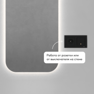Безрамное зеркало прямоугольной формы с контурной (тыльной) нейтральной подсветкой, свет 4000К. Подложка из высококачественного МДФ, светодиодная лента защищена матовым свето-рассеивателем от попадания пыли и влаги. Есть вывод 220W для подключения к сети (блок питания подсветки 12V), включение подсветки от выключателя на стене, либо от розетки.