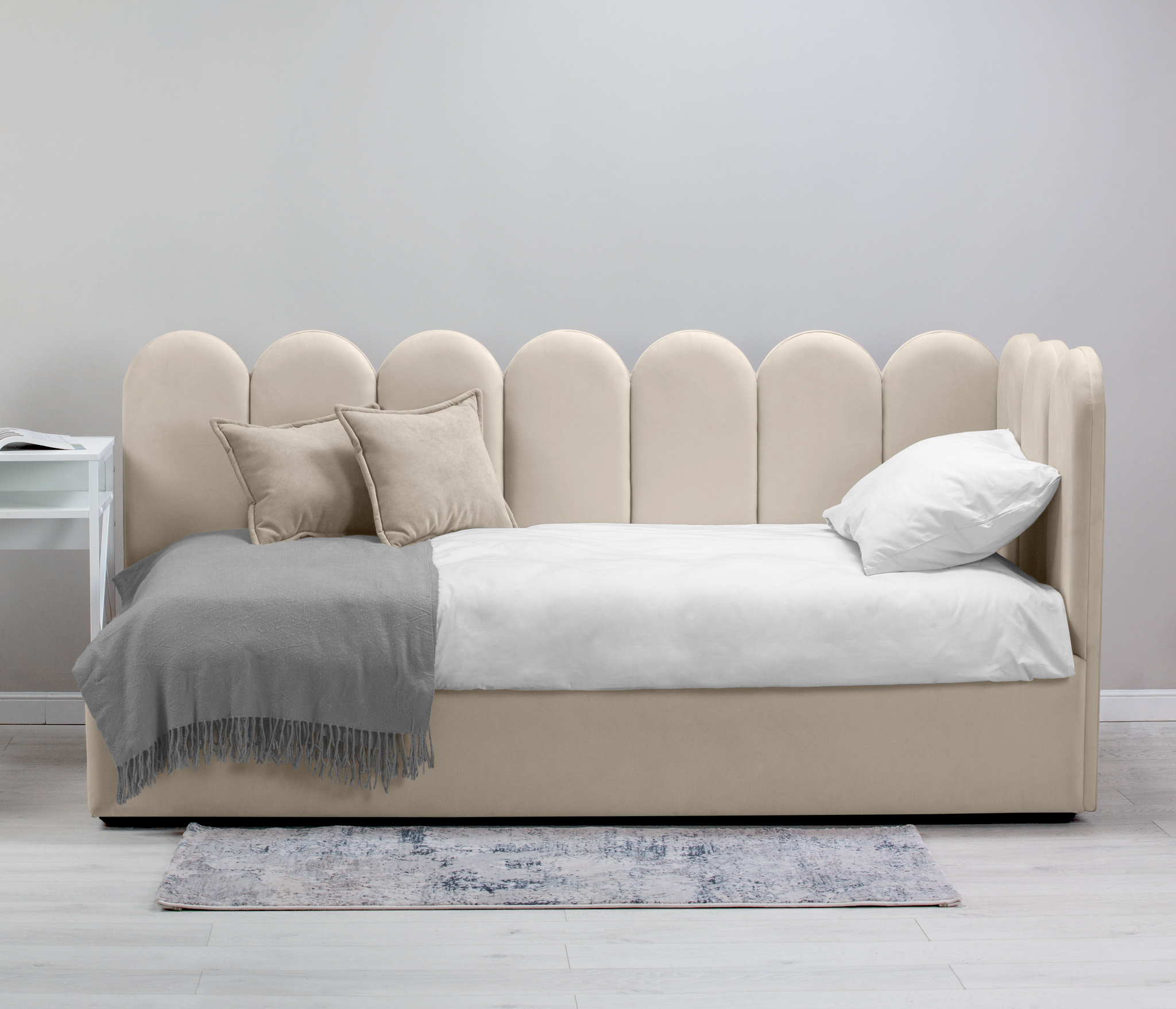 Кровать с мягким изголовьем Мия 90 с подъемным механизмом, микровелюр (Кремовый) Код I0000378447