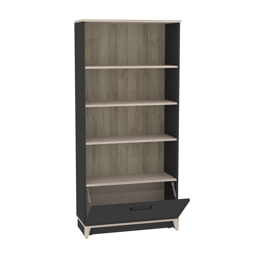 Вместительный шкаф многоцелевого назначения с открытыми полками и закрытой нишей. Поможет организовать пространство гостиной и сэкономить пространство. На широких открытых полках хватит места для всей Вашей литературы, фоторамок и комнатных растений, предметов декора и памятных вещиц. Закрытая секция снизу пригодится для коробок с вещами и всего того, что нужно спрятать от лишних глаз.