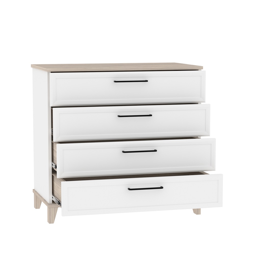 Практичный комод с выдвижными ящиками. Коллекция Аурелио – воплощение лучших черт классики в современном исполнении. Корпус мебели выполнен из высококлассного ЛДСП, фасад – МДФ в профиле. Рамочные фасады выглядят изысканно в сочетании с металлическими черными ручками. Удобен в любой комнате, от прихожей до рабочего кабинета.