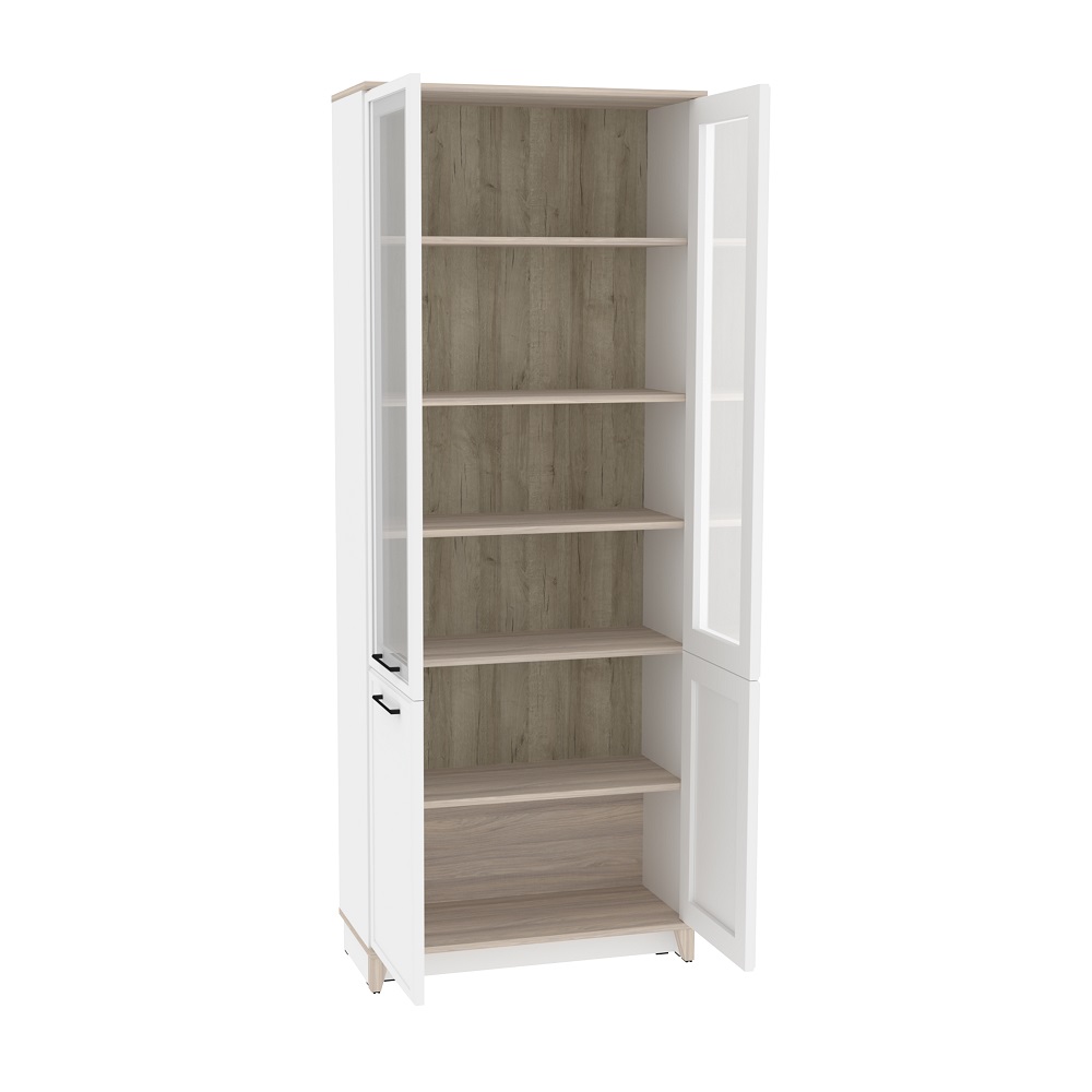 Коллекция Аурелио – воплощение лучших черт классики в современном исполнении. Корпус мебели выполнен из высококлассного ЛДСП, фасад – МДФ в профиле. Рамочные фасады выглядят изысканно в сочетании со стеклом и металлическими черными ручками. Шкаф для книг Аурелио 8 за счет ширины в 80 см вместит в себя разноплановые вещи: книги и другую печатную литературу, сервиз, предметы декора, комнатные растения и все то, что нужно хранить в гостиной.